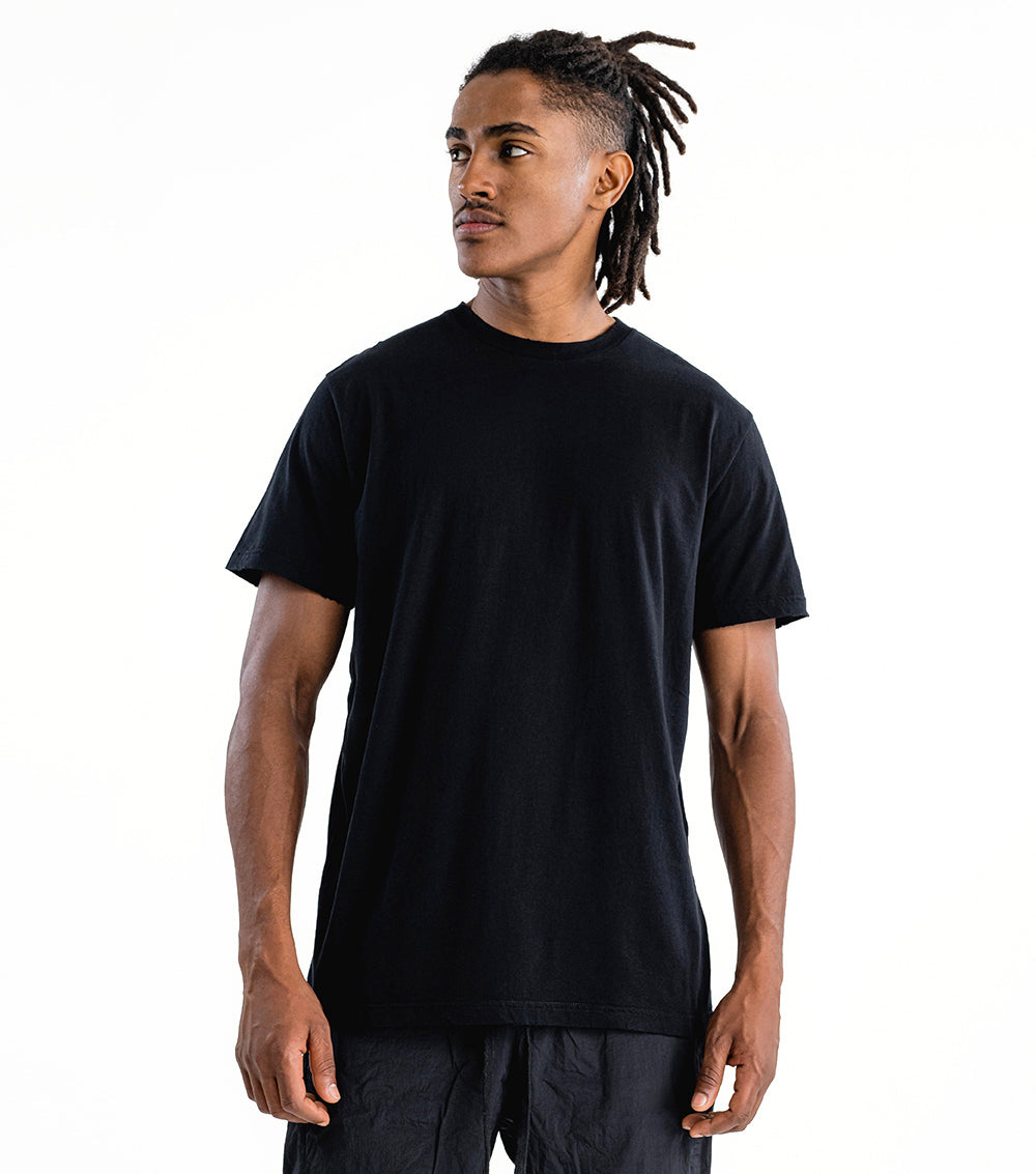 this may just be the perfect black t-shirt you never knew you needed. perfectly fitted in our super soft cotton, this T is the go to piece to complete any laid back look, edges are raw and deconstructed.