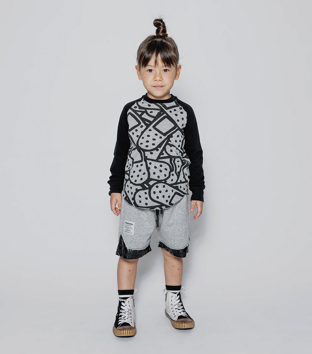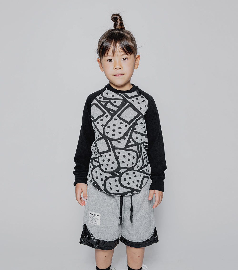 this dope heather grey unisex longsleeve shirt features our print of the ubiquitous bandaid design by dede, an urban-style artist whose graffiti appears all over the world, sometimes in the unlikeliest places. the feel is classic nununu in that a baseball-jersey style—arms & trim stay black for contrast. meanwhile, the care tag rides on the outside near the hem, because we don’t do things like everyone else.