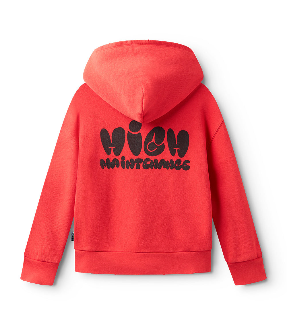 who says a hoodie has to be basic? not us. this everyday unisex hoodie brings the heat just how we like it in smokey red french terry with a high maintenence sign so that we don't forget who's the boss here. it’s got deconstruction for some added edge. plus, thumbholes for the cool kid factor, obviously. it’s soft, tough, and totally timeless—the one they’ll wear with everything. layers easy, lasts forever (or close enough). trust, you’re gonna want one in every color.