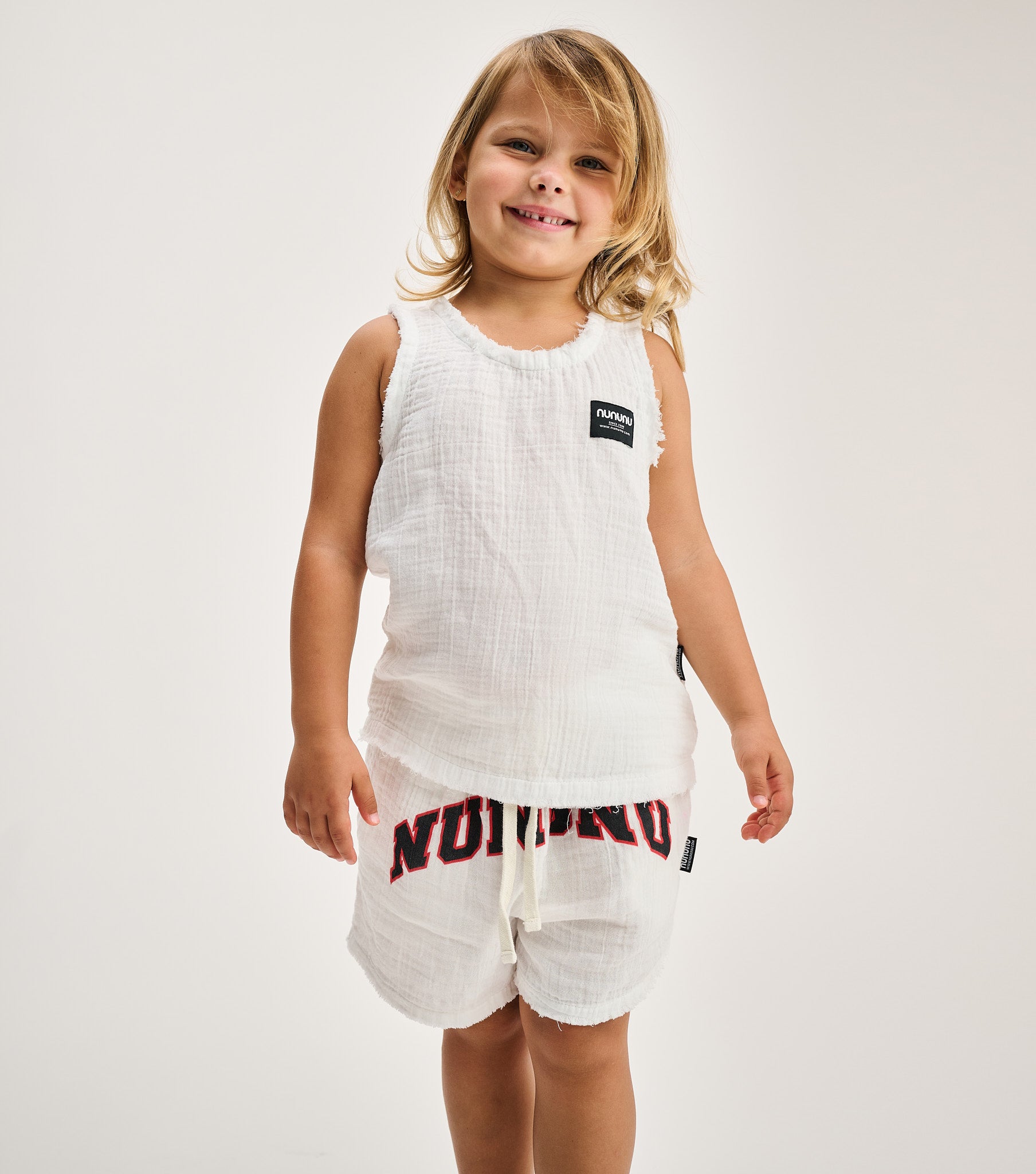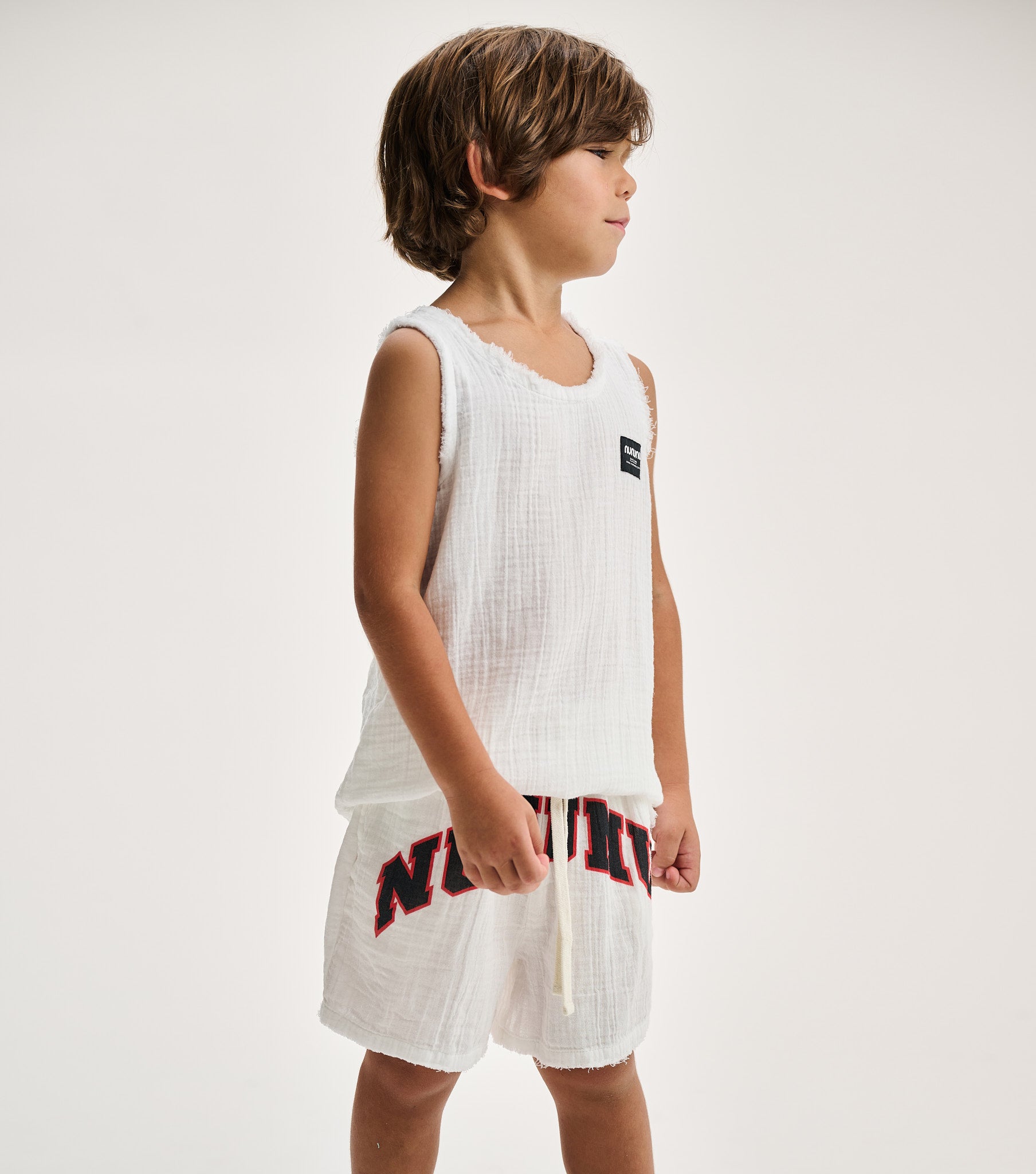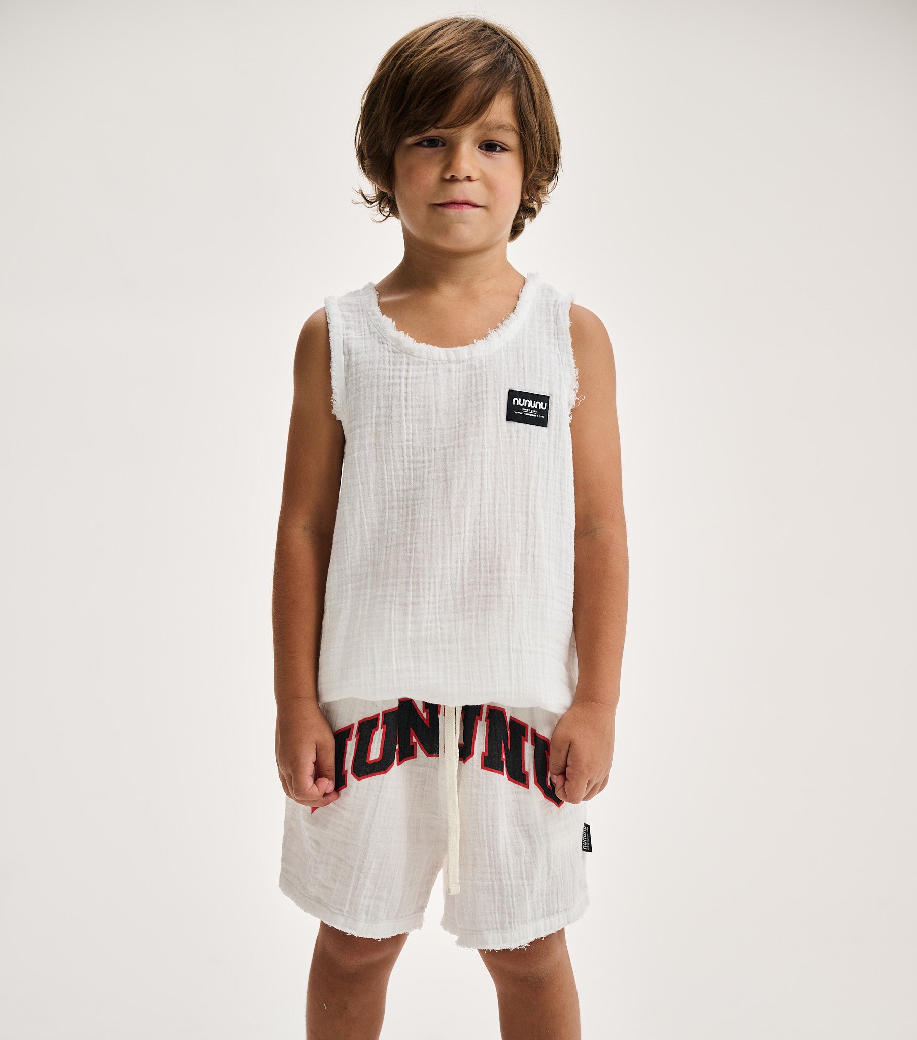 nothing says summer like a breezy tank made of fabric that feels barely there, even on the hottest of days. this one’s a gender-neutral fit in white muslin with a totally chill tie dye effect. it’s got a round neck & frayed edges all around to give it full on island vibes. yeah, it’s so relaxed all they’ll want to do is sip strawberry slushies on the sand. of course, the tag rides right up front in contrasting black so you don’t have to constantly tell people where you got it.