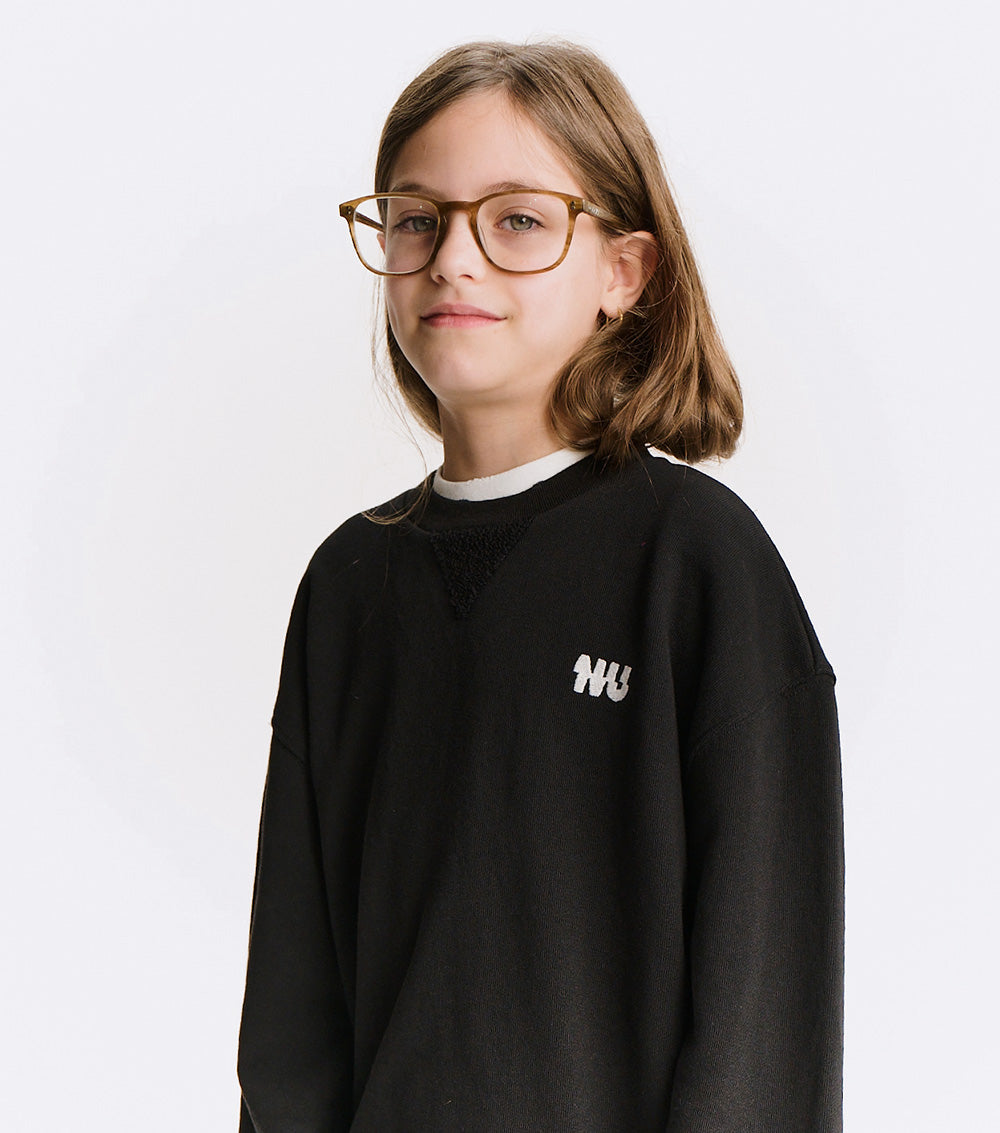 who says a sweatshirt has to be basic? not us. this everyday unisex sweatshirt brings the heat just how we like it in black french terry with a flash of white in the letters nu stitched up top. it’s got a fuzzy triangle neckline detail for sporty flair & custom deconstruction for some added edge. plus, thumbholes for the cool kid factor, obviously. it’s soft, tough, and totally timeless—the one they’ll wear with everything. layers easy, lasts forever (or close enough). trust, you’re gonna want one in every color.