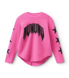 pull out that guitar & plug it in because it’s time to rock! we've got our totally edged up rawk logo bold & beautiful on the front of this unisex hot pink t with our signature stars on the sleeves to match the oh so electric vibe. it’s made of super comfy & soft slub with raw hemlines perfect for all those long garage jam seshes. to keep it grungy we’ve got a super rounded hem at the bottom with the front a bit shorter than the back. if it's not already completely clear, the kid wearing this t marches to the beat of their own drum.
