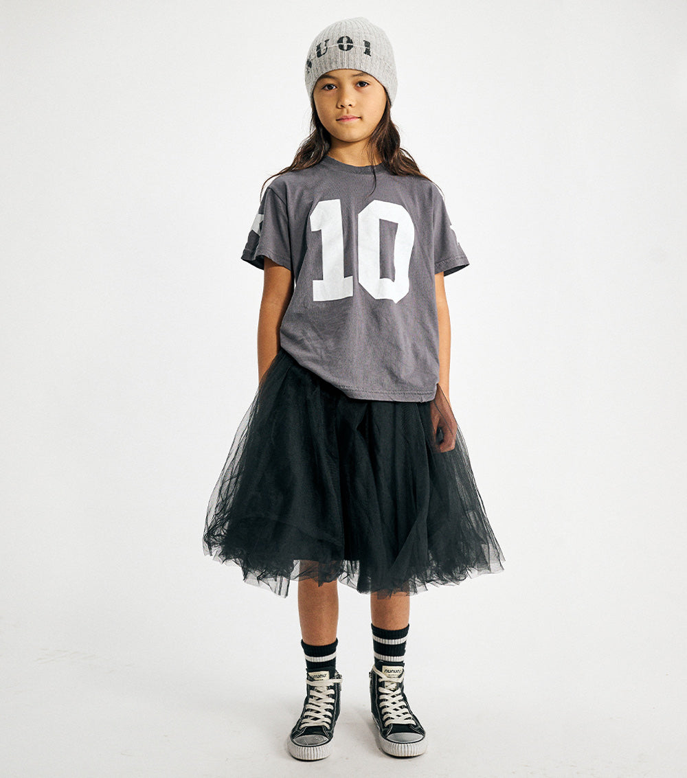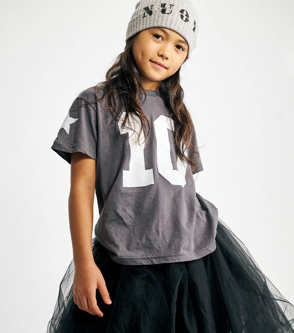 playing vs winning, what’s the difference? they’re pretty much synonyms for the kid wearing this black t-shirt who is always a 10! it’s made of super soft single cotton in a classic gender-neutral cut with custom deconstruction that shows off its perfection for playing sports or kicking back after big wins.