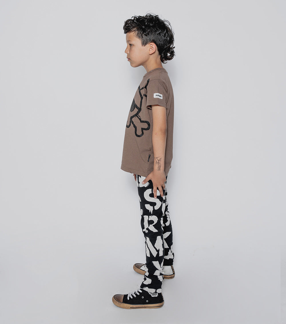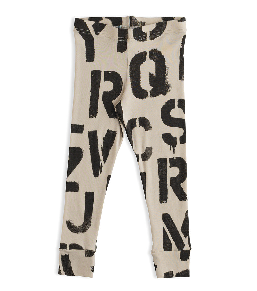 these soft-as-heck natural unisex leggings give kids the freedom they need to dance, play & eventually rule the world. layer them under a dress or pair them up with our t-shirts & sweatshirts. since we think nerd is the new cool, we put stenciled letters all over. it’s a good way to show off your advancing literacy while slacking on your summer reading. isn’t it ironic?