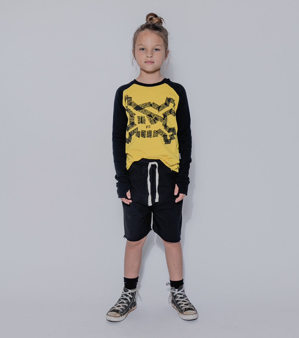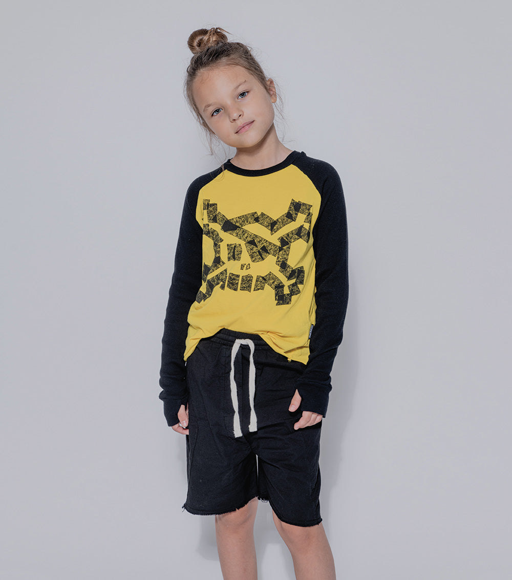 summer is all about the shorts game, and these are the win for boys & girls. light & airy, these black shorts are a bit on the longer side for a laid-back look, and they’re cut loose but fit well, not like you’re swimming in ‘em. elastic drawstring waist keeps it tight (literally), and a frayed hem adds a little edge.