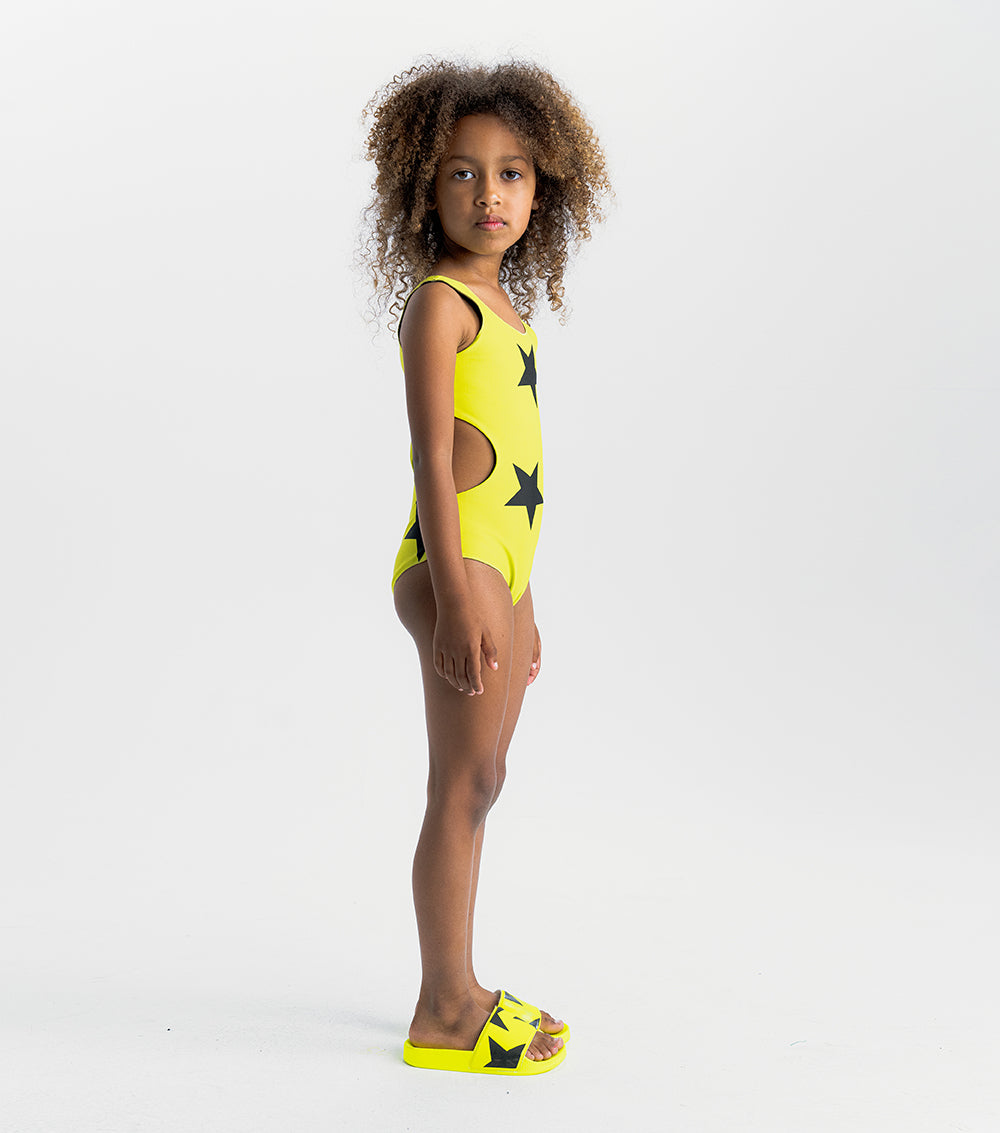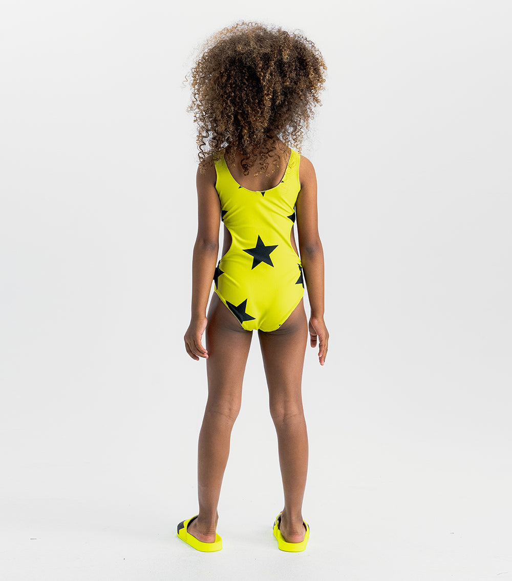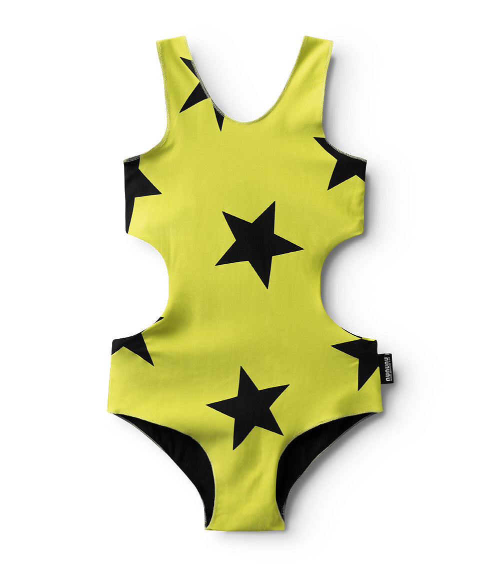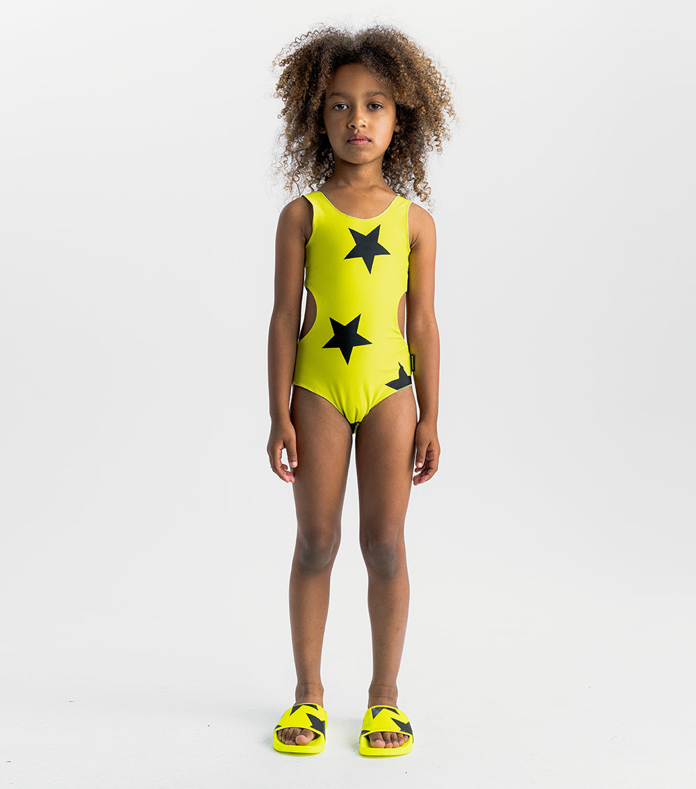if you’re chasing stars, you’ll want to track down the kid wearing this. that’s why it’s a hot lime one piece with big black stars all over it so you can’t miss it. not that you ever would. it’s got sturdy tank straps & round cut outs at the waist for the coolest kid on the beach look. basically it’s perfect. plus it’s bright as hell, just like your kid.