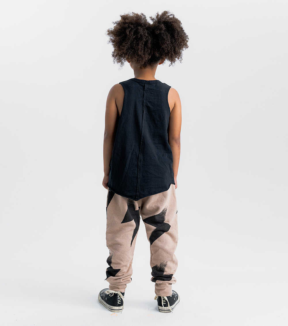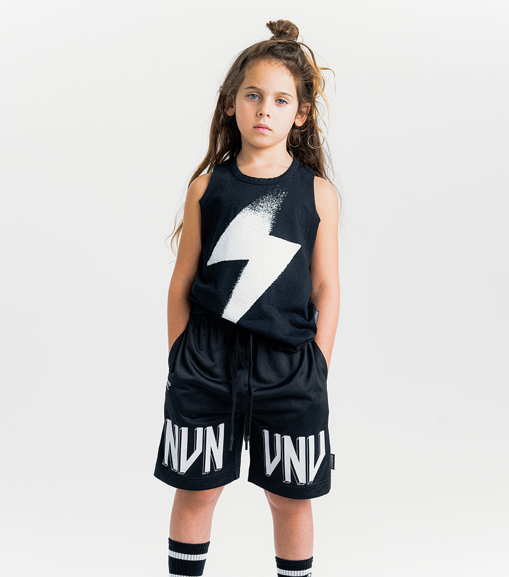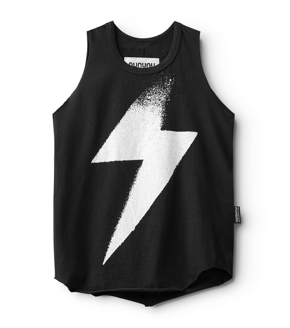 your kid will be looking bright & powerful as hell in this black gender-neutral single cotton tank. it’s got a massive lightning bolt printed on the front in a gradient that looks like the artist ran out of paint. it’s made of wear anywhere single cotton with raw edges on the bottom & sides. finally a fit as striking as your little rebel.