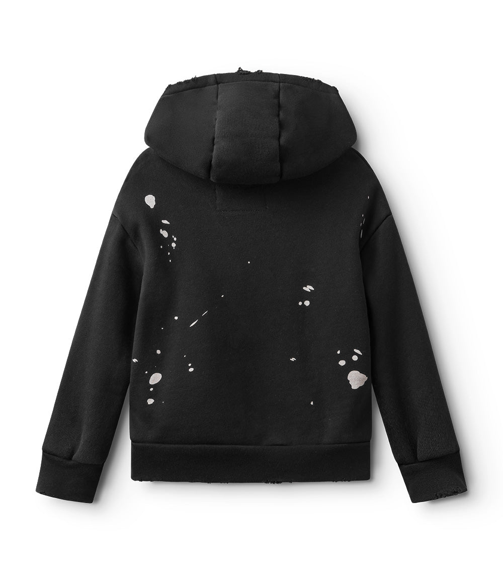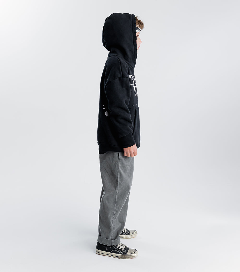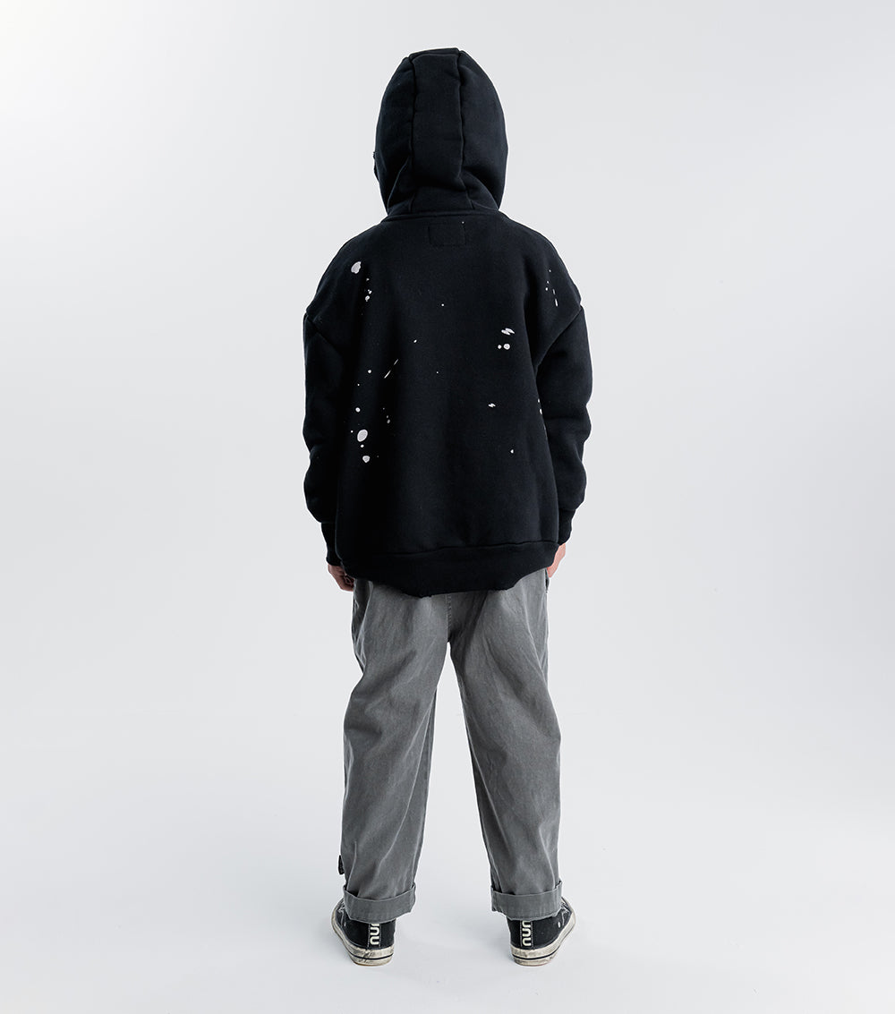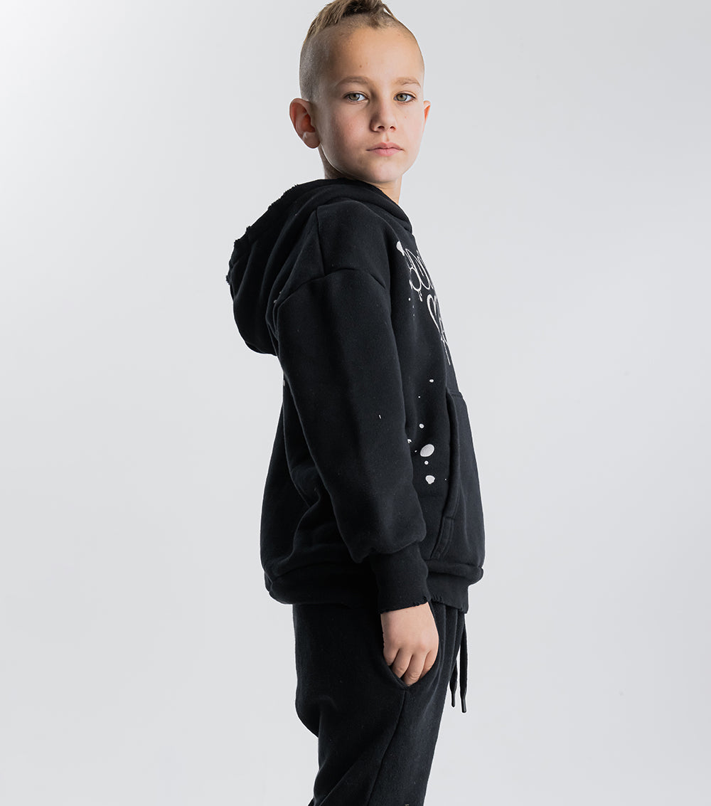 a unisex black hoodie should be in every cool kid's closet. so check out the major upgrade we added to this must have basic. it’s heavy french terry so not only is it too cozy for words, it's also super warm and it’s got a little bit of extra weight so it feels like a soft comforter you can wear up on your shoulders. to make it feel even sleepier, we got that big old hood & giant kangaroo pocket up front. this way too cool print is splashed like wet paint, graffiti-style on the chest and practically dripping off. obviously it says control freak in big letters because that’s clearly your kid’s m.o.