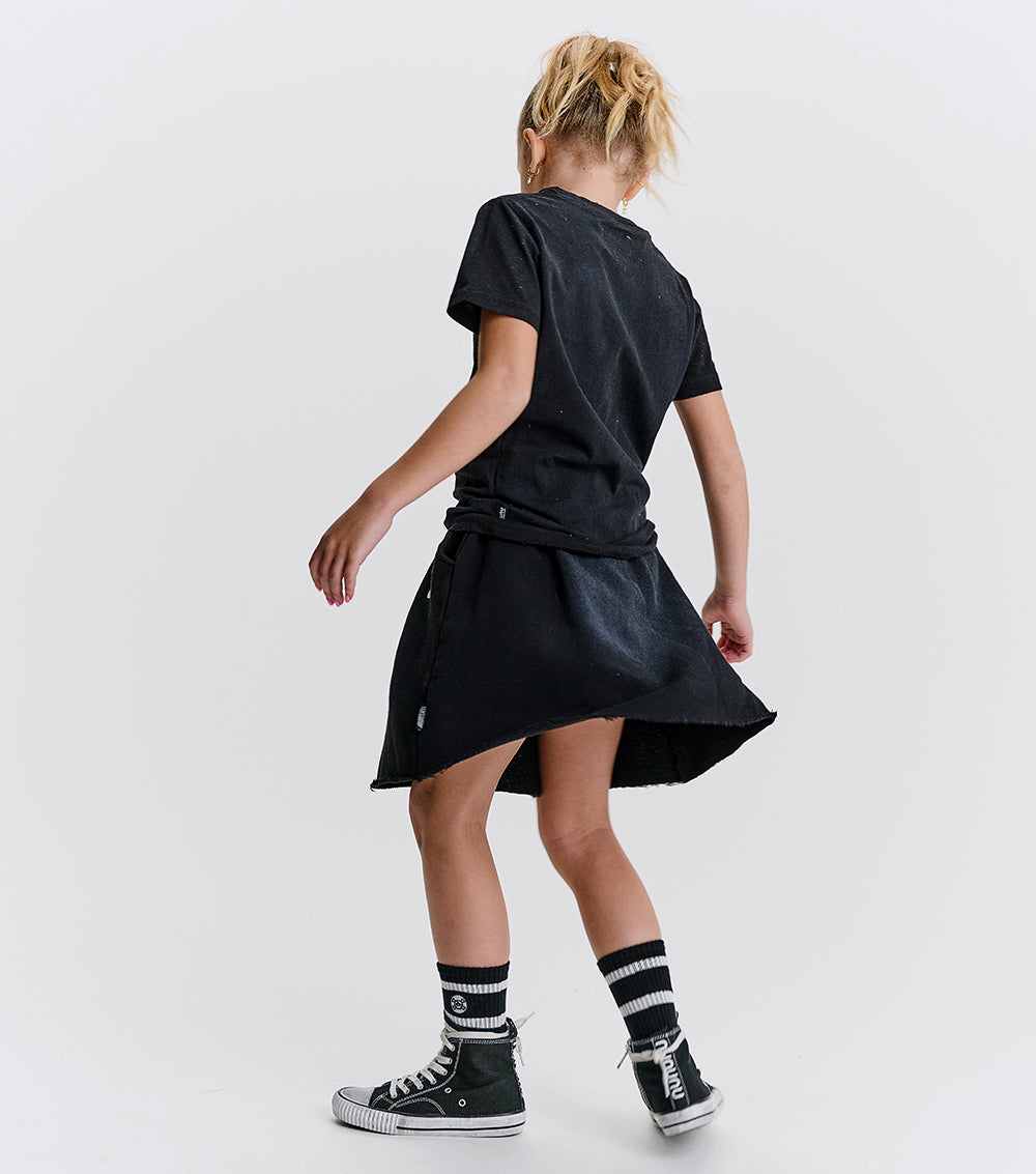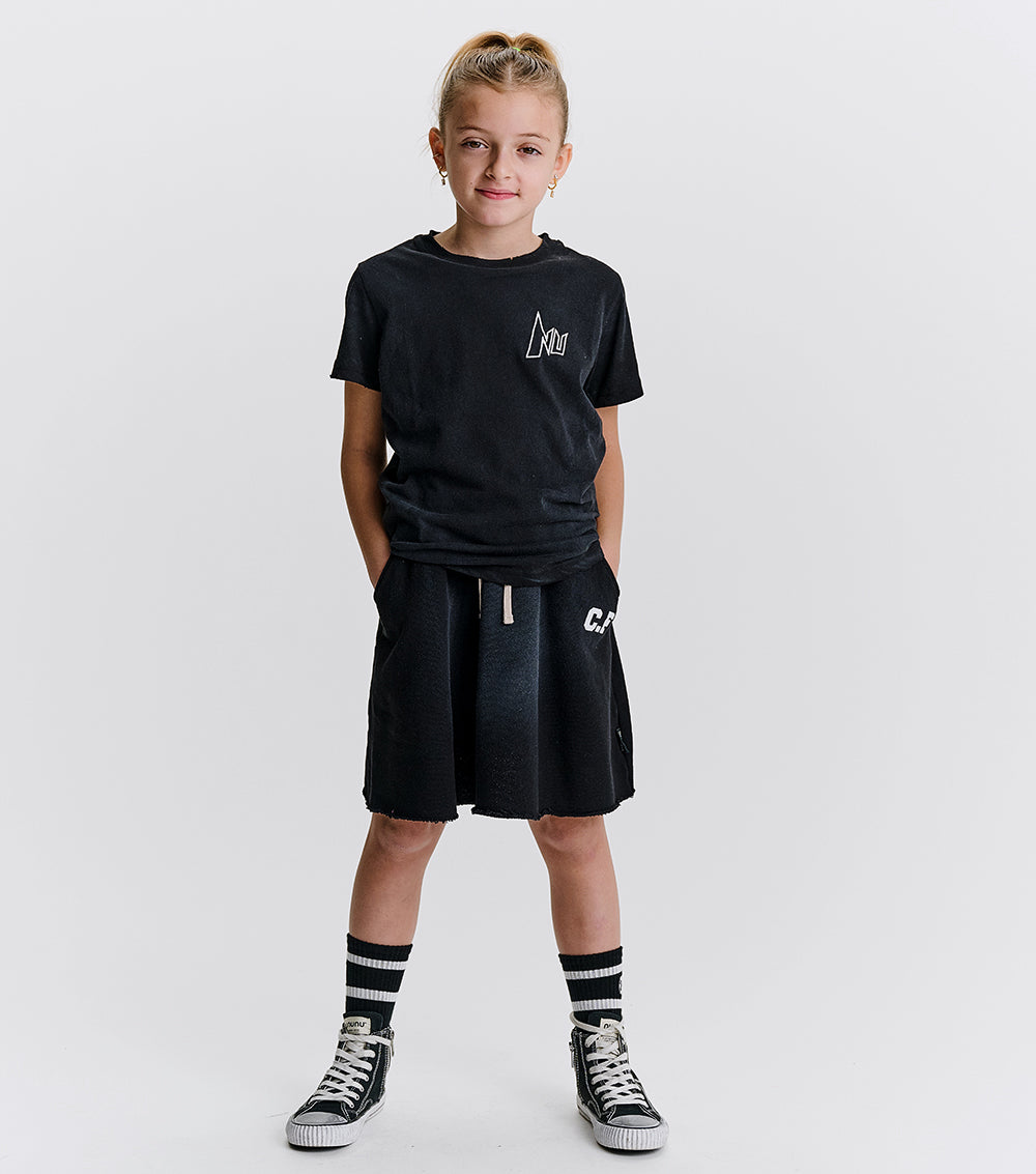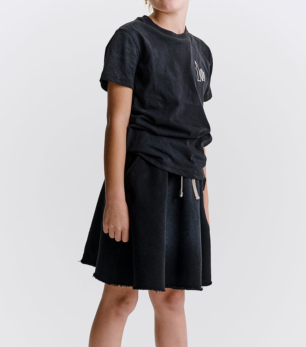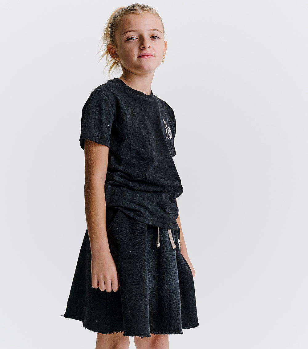 meet the perfect fit for your humble fashion icon. it’s a totally chic skirt made of super soft french terry with a drawstring waistband that makes sure it stays put. it says c.f in white print in our sporty lettering because this kid is a complete control freak. how else could they achieve that seamless team captain energy? of course, it’s got a washed look on the front & a raw bottom hem that makes it look as lived in as it's about to be. oh, and did we mention it has cool kid pockets? yup, it’s perfection, just like your kid.