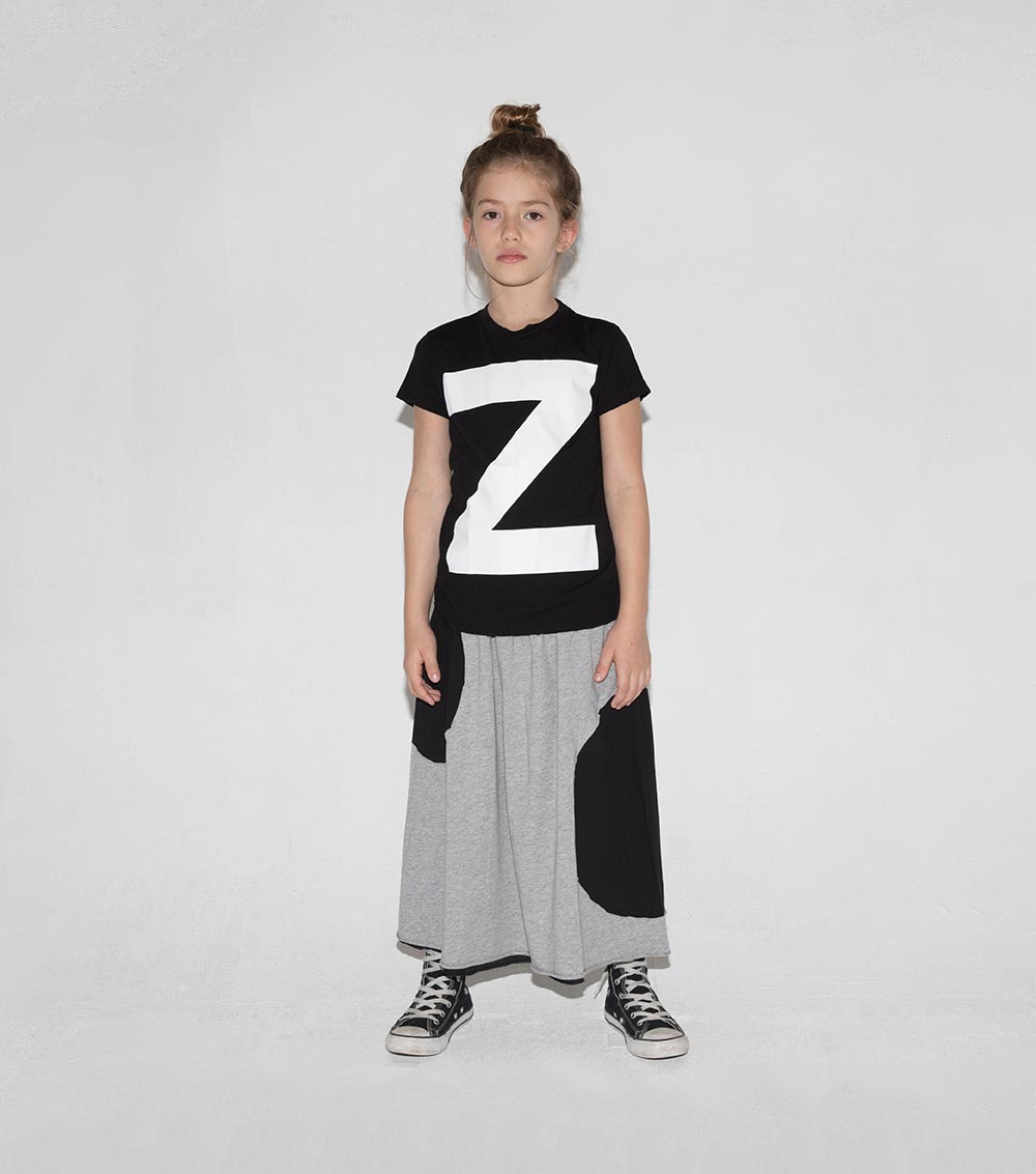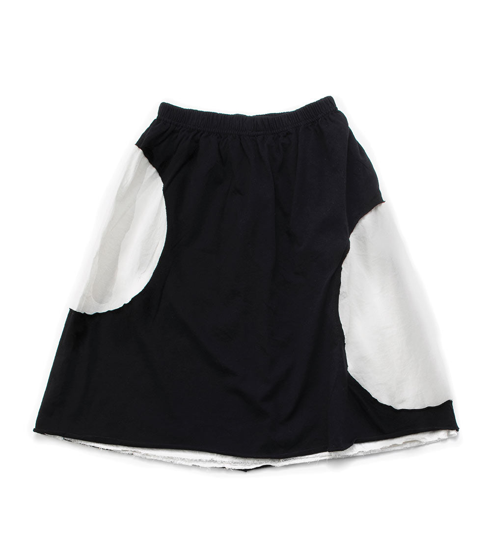 we love taking grownup trends & pushing them on our kids, so this seemed like the perfect moment to go maxi with this maxi black circle skirt. we added contrast-textured asymmetrical circle patches for an arty, avant-garde effect. the elastic waist keeps it incredibly comfortable & the raw hem adds just enough edge. great for a birthday party or special school event, or even just for every day with a tee or tank & sneakers.