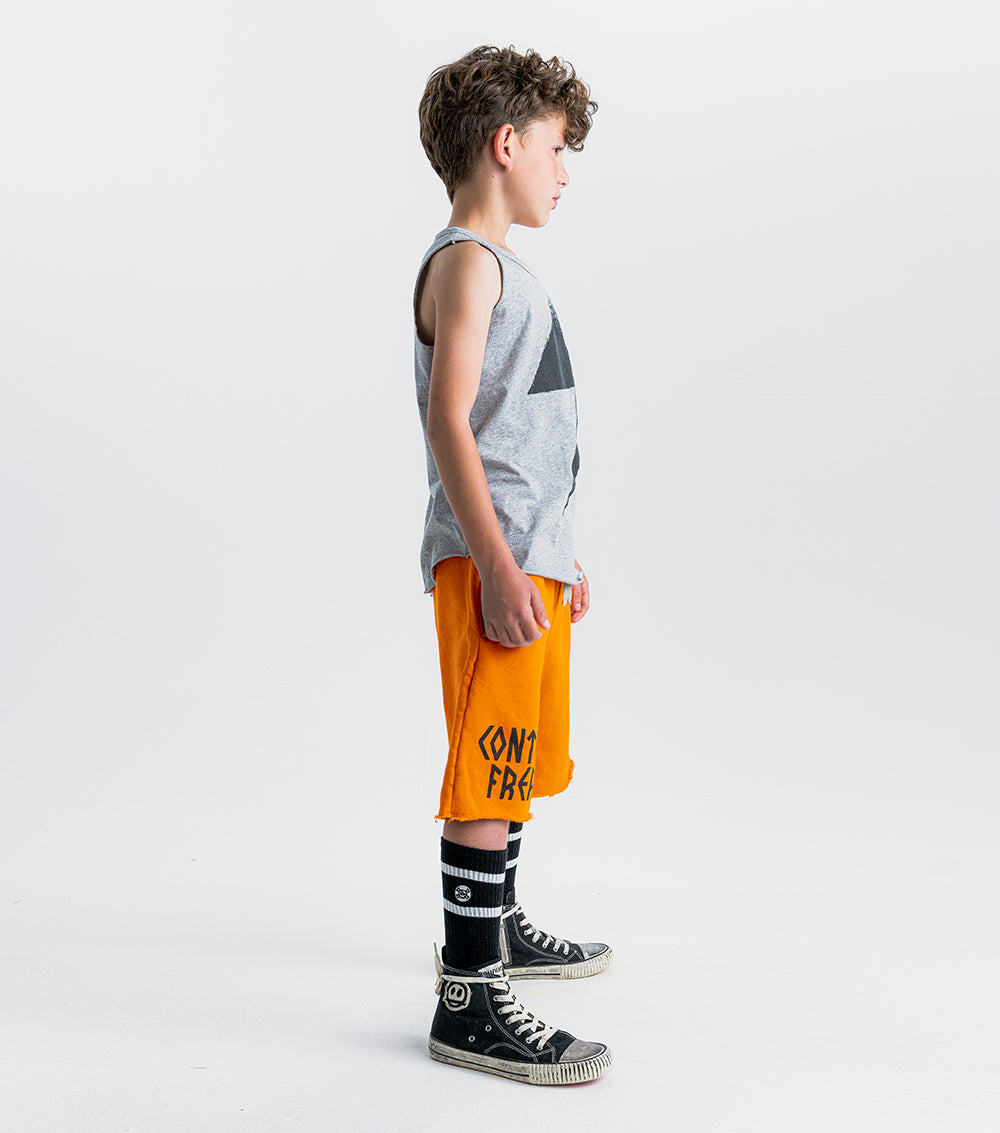 let your kid get their island vibes on with this super comfy orange sun french terry shorts. they’re a basic gender-neutral cut with control freak printed on the side in a font that looks like it could have been written in sticks on a sandy beach. the t in control is an arrow pointing up so everyone knows who these shorts are talking about. side pockets are there for keeping hands warm & a drawstring makes sure they’ll stay put. this fit is perfect for throwing on after wading around in the waves or chilling in front of the bonfire on summer nights.
