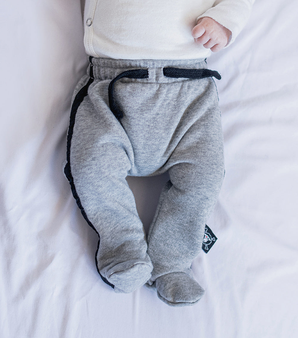 these heather grey baggy pants let babies get their swag on in the comfiest way. they’re nice & roomy for lots of fruitless squirming, and they don’t require shoes, so that’s one less thing. style ‘em with a onesie or matching nununu sweatshirt. Luxurious, super soft double-single cotton keeps the kid nice & cozy, like a constant hug, as they take in their strange new surroundings, blissfully unaware.