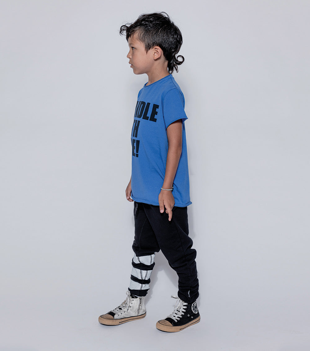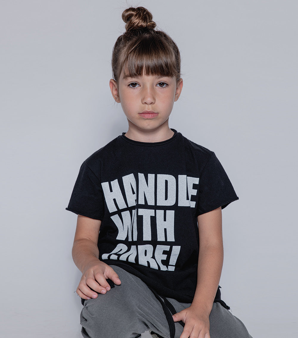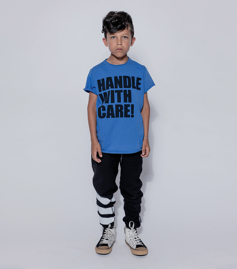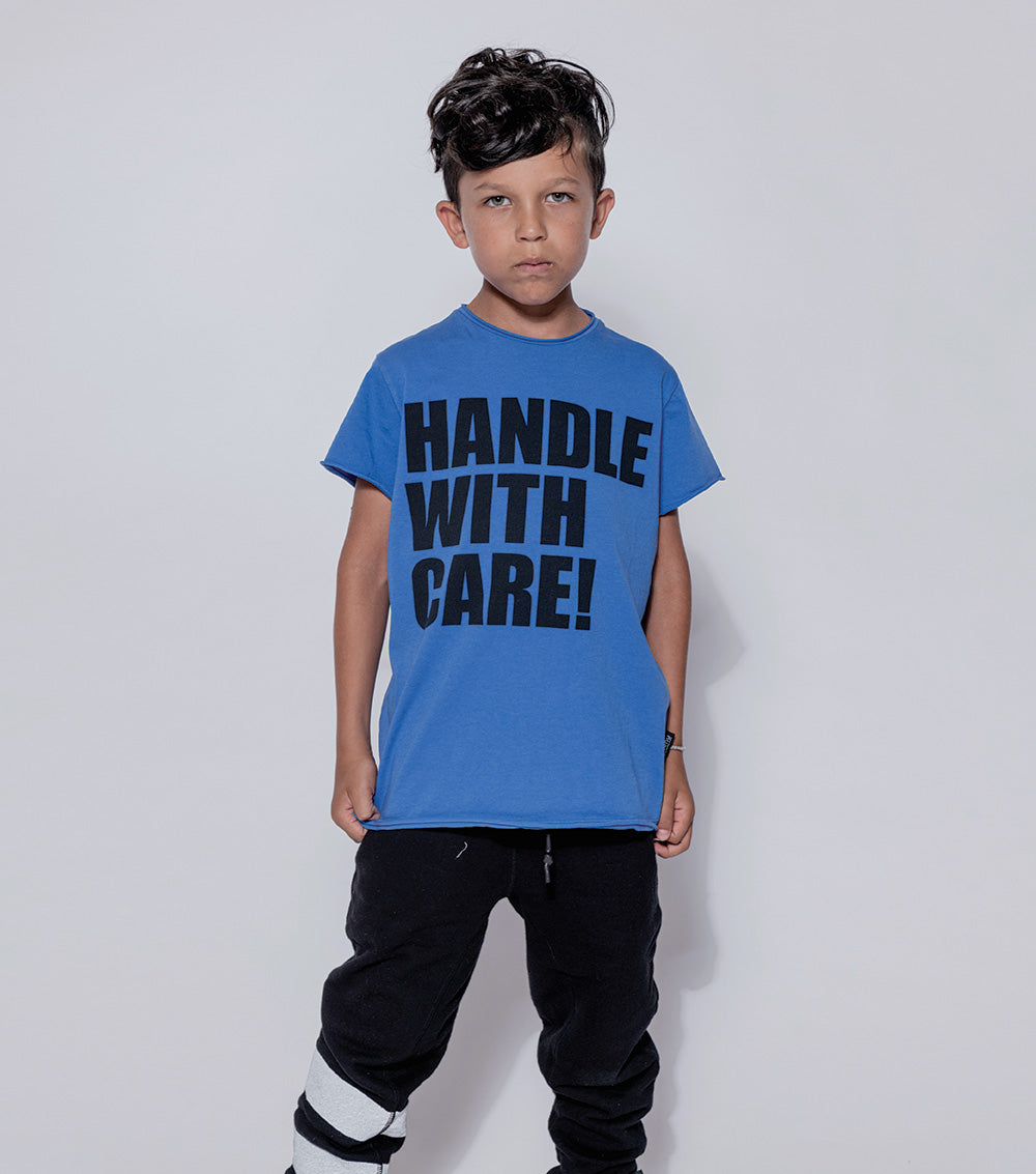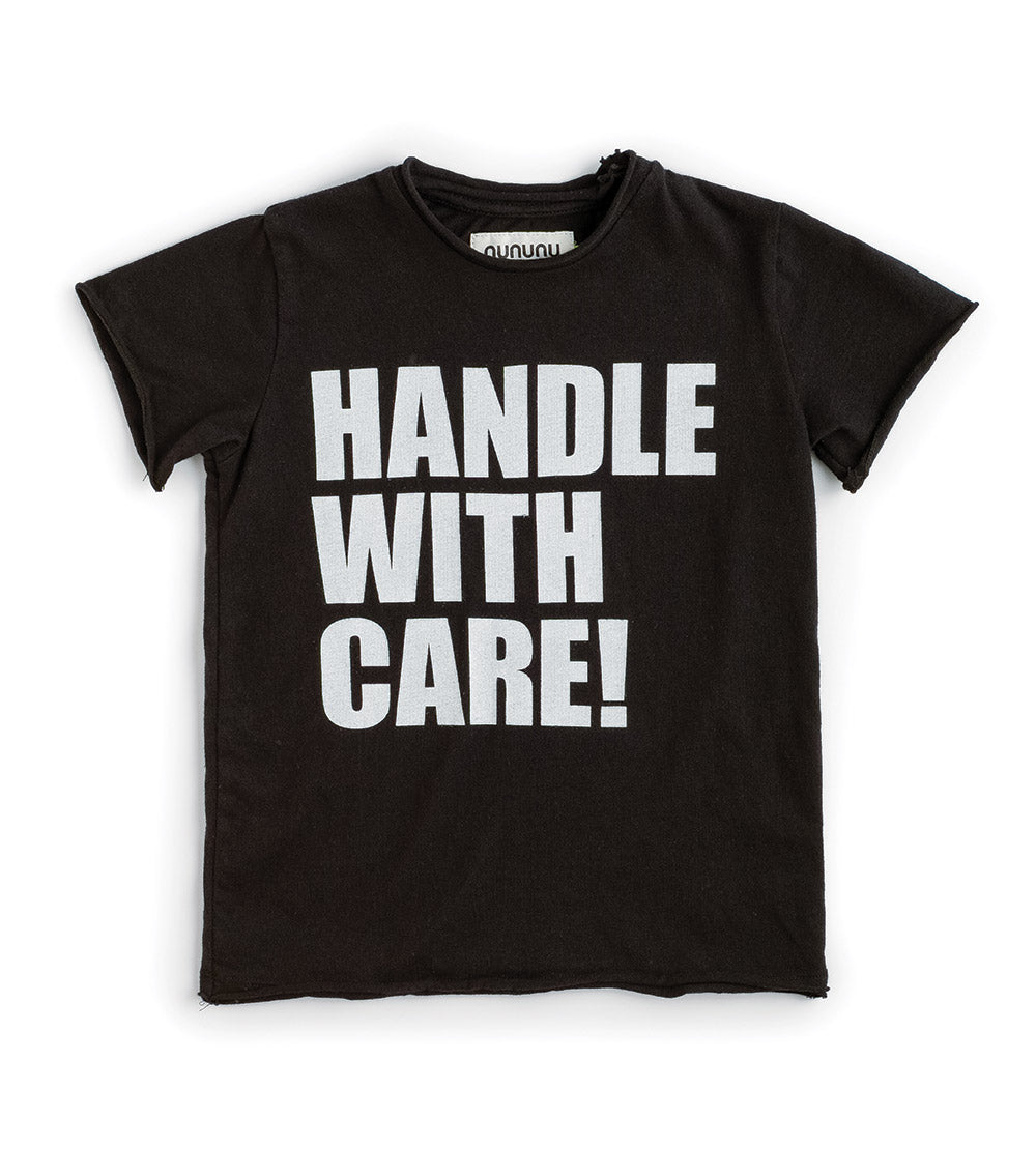 they may think they’re invincible badasses, but we know how fragile kids are. this classic black nununu t-shirt lets boys & girls define their boundaries a bit. “handle with care!” it screams, in no uncertain terms, to let the world know casual interactions won’t cut it.