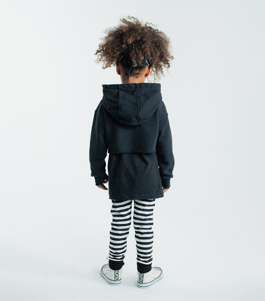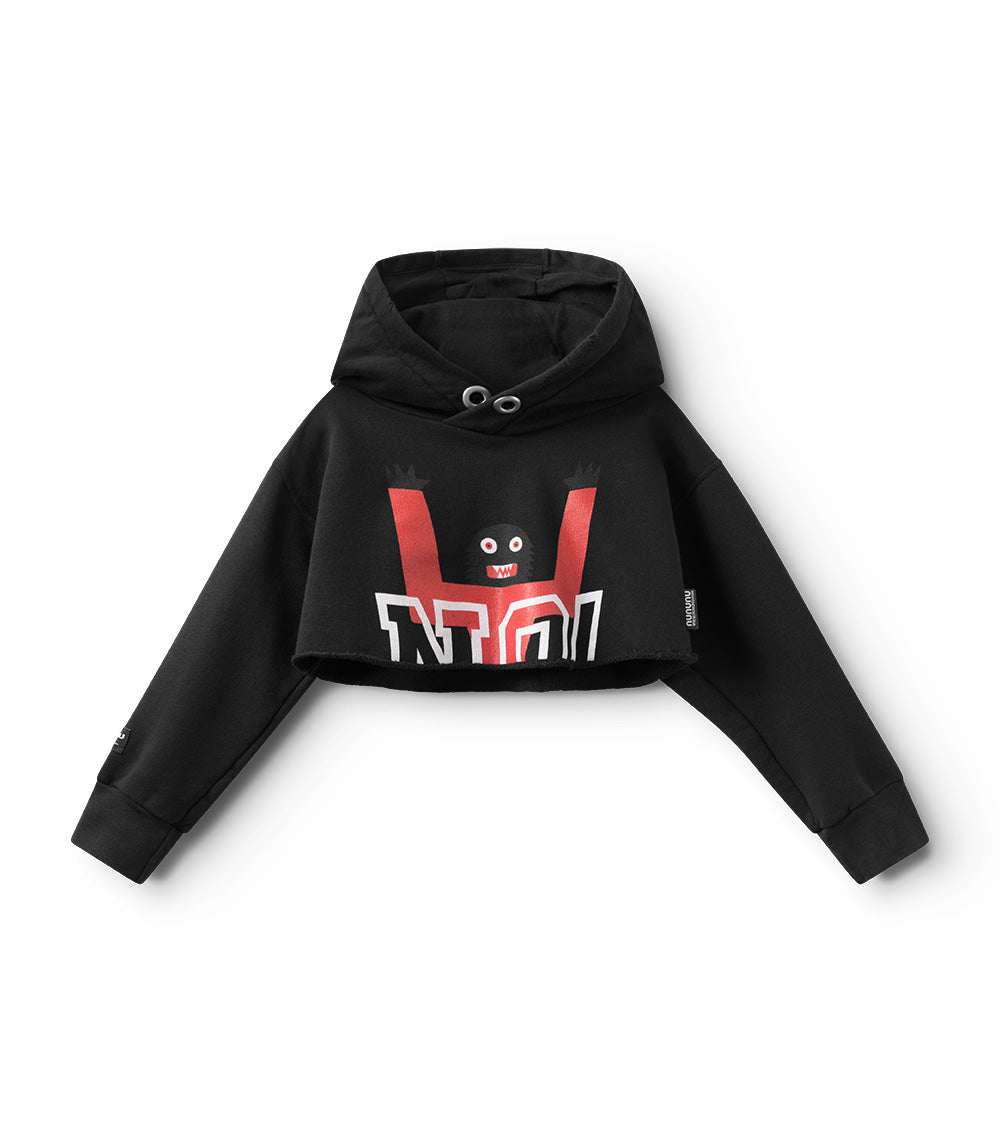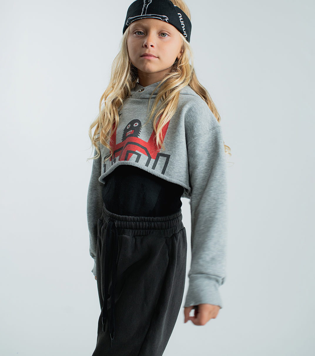 our new kooky monster is a creation by our favorite illustrator craig hopson (aka “craigio”). he shows up big on this black unisex “interrupted” gray hoodie, along with the word “no!” on the chest. except the whole thing is just hacked off in the middle for a completely punk look that is perfect to rock all summer long. soft & cozy in french terry, this guy is relaxed & a little bit rough around the edges. wear it with swimsuits or layer over tanks & tees for a super edgy style moment.