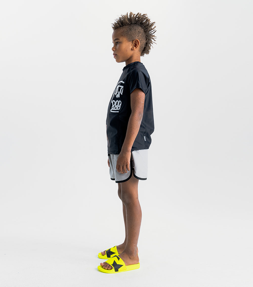 nothing says kook like the salty haired little human wearing this unisex short sleeve rashguard. they’ll be ready to catch waves with the skull head print created in collab with artist shai id alony. plus we’ve got an awesome bone on the sleeve in white to keep the edge factor cranked up as high as it will go. to hit the max, we’ve added the nununu rock n roll 3d logo print in bright orange. all the prints are intentionally cut off by the seam. because we love to keep 'em guessing, just like your kid.