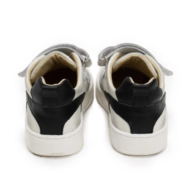 our must have sneaker is always fresh but never clean. a classic dirty white leather look with a sleek black detail in the back. these unisex sneaks got just a little bit of lift in the sole & two tiny air holes for breathability on even the hottest summer days. plus, the best part? our fave double velcro strap for a look that is as cool as it is convenient. you might as well buy them now because you know your kid’s gotta have ‘em. and yes, they’re even more comfortable than they look.