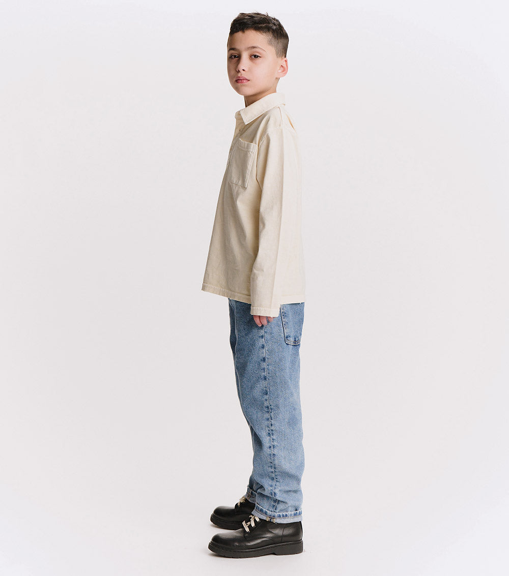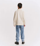 watch out dad’s closet, this shirt is coming for your all-time favorite look. it’s a classic, long sleeved polo made of a natural pique so it’s super breathable with a ribbed collar just waiting to be popped. it’s a gender neutral cut with a washed sort of look that gives it a pre-loved through the decades feel. it’s a little faded and a little vintage in a way that seems like maybe it was a back to the future vibe.