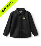 button up, but make it cool. this isn't your stiff, scratchy oxford - it's woven, but soft like your kid's fave tee. made to move, made to chill, made to impress. wear it to a wedding or the playground. nu pops loud in hot lime, embroidered right where it counts. no frills. just a clean, classic look with a nununu twist. play hard, look sharp.