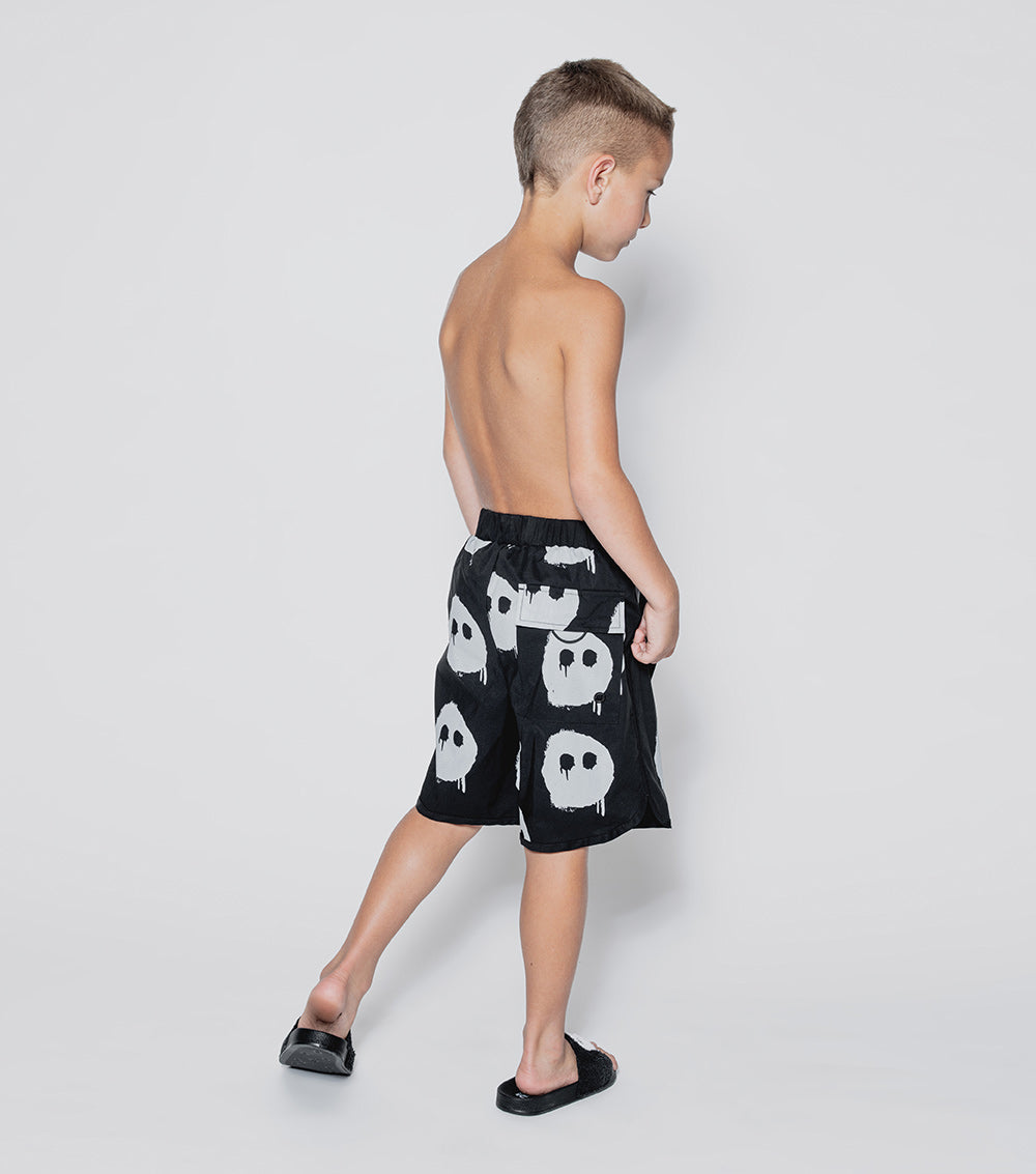 we’re having a bit of a face-melt moment, to be honest. these unisex swim shorts feature our new “melting mask” graphic, a highly rebellious take on the smiley face. a classic surfer’s cut, they’re nice & roomy for running, swimming & rocking the boogie board. they have built-in undies & an elastic waist so the kid can easily change, because sitting around in wet shorts is just plain gross.