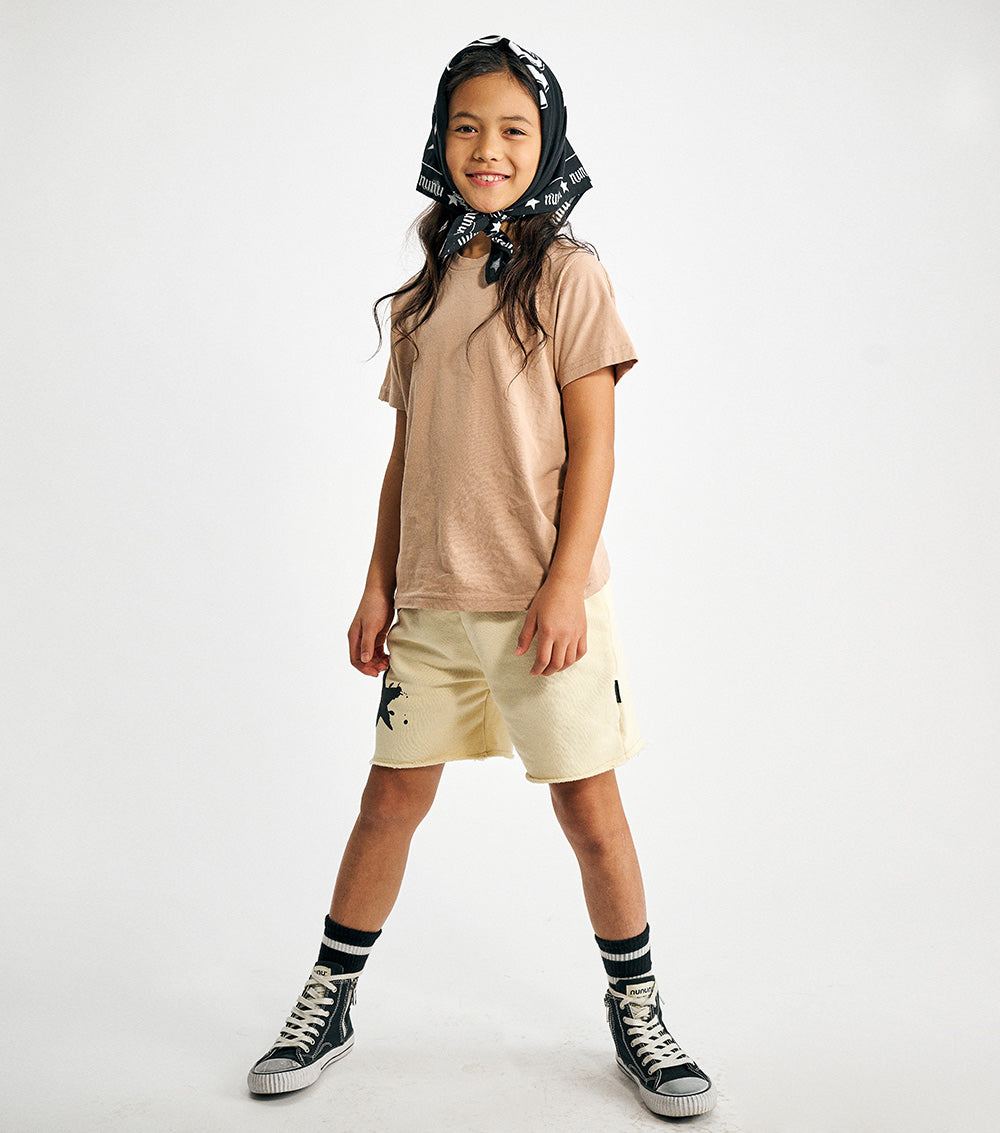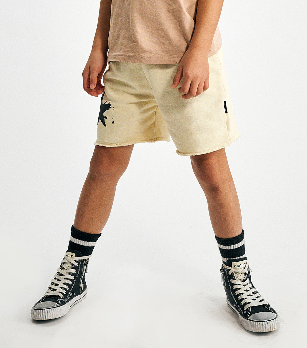 let’s hear it for a silent scream of your kid’s favorite word "whatever" raging across the front in an arch of collegiate-inspired letters on these sweat shorts. the whatever vibes are perfectly matched by the rest of this natural-colored fit. first off, the french terry is so soft there’s nothing to care about. second, the stretchy waistband is too comfy to worry about a thing. plus, the side pockets keep their favorite things close and the good vibes closer and the star splattered on the leg just makes it all the nununu way.