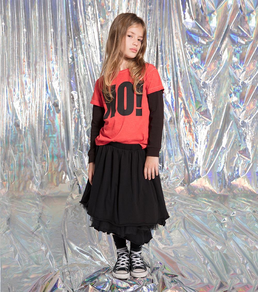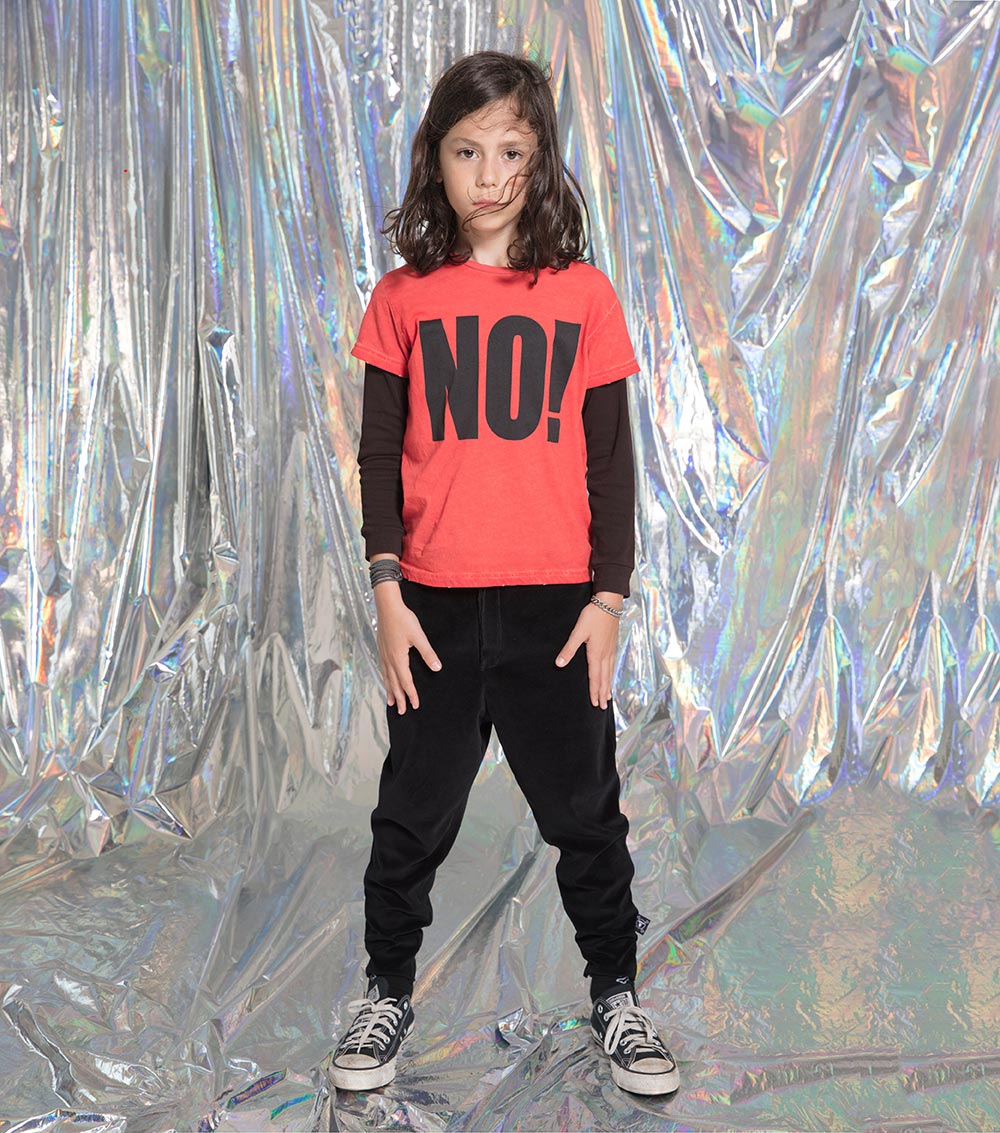 kind of like how adults wear their favorite band on their t-shirt, kids can have their favorite word. definitely a statement-making piece for boys & girls, this super soft, layered-look shirt lets them start being “anti” early on, although we’re sure this holiday season they’ll ease up just before the presents come.