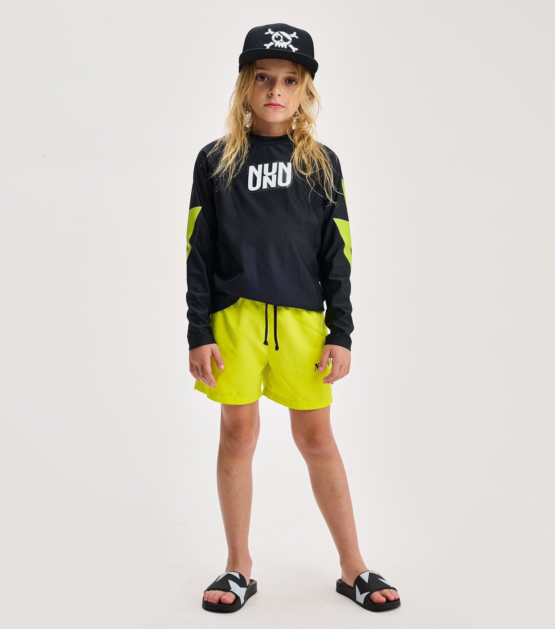 hang ten in these iconic surf shorts made for showing off epic moves. they’re a gender-neutral fit in a bright hot lime, the perfect shade to help them shine a little bit extra. they’ve got a mid-thigh length cut with a stretchy black drawstring waistband for that cool contrast & total wearability. of course, nu01 is featured on the leg so the world knows it’s not just luck, this kid is always number one