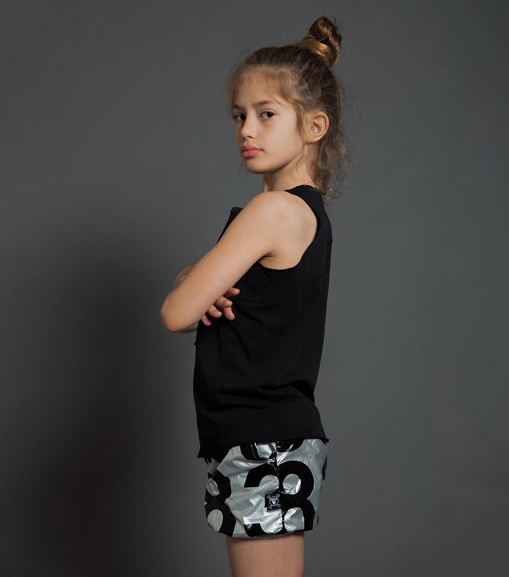 grownups aren’t the only ones who want to perfect their dhanurasana. these yoga shorts let boys & girls bend & stretch their legs any which way they want. roomy but secured with elastic at the waist & leg openings, they’re soft & comfy, spangled with our number print, a smart-yet-cool look in shiny silver nylon. namaste, people.