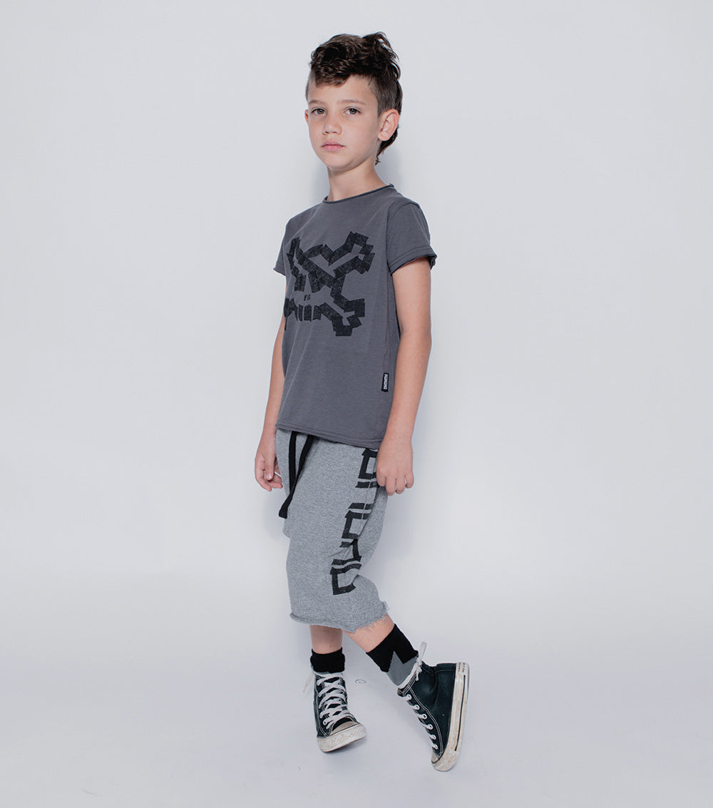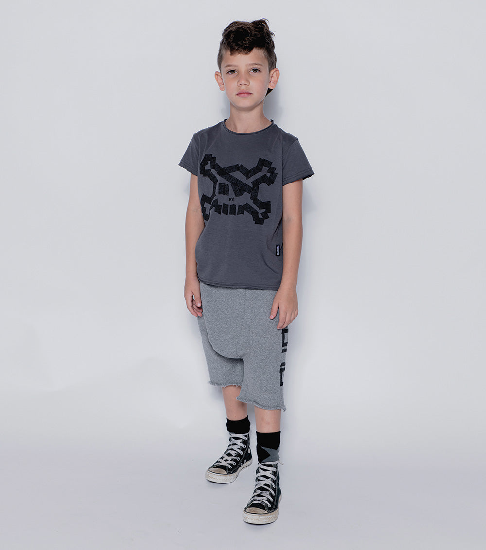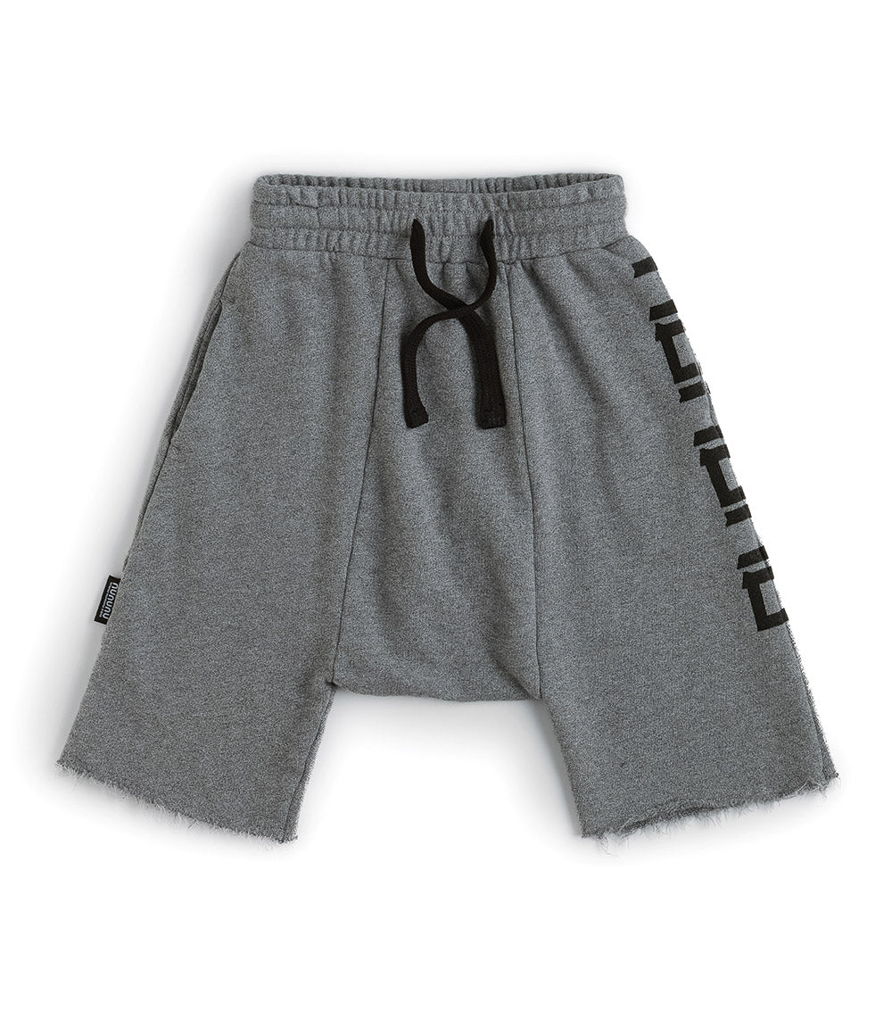 we do love a drop crotch, if only because it’s the loosest look you can imagine. these dusty heather grey, harem-style shorts will keep boys & girls running free all summer long, with their soft-as-hell terry, long-ass length & raw edges. our logo runs down the side in our masking-tape effect, which is our way of saying it’s cool to have fun & express yourself with whatever is lying around the house.