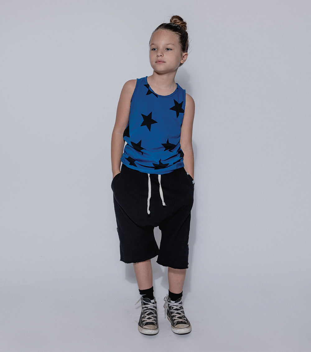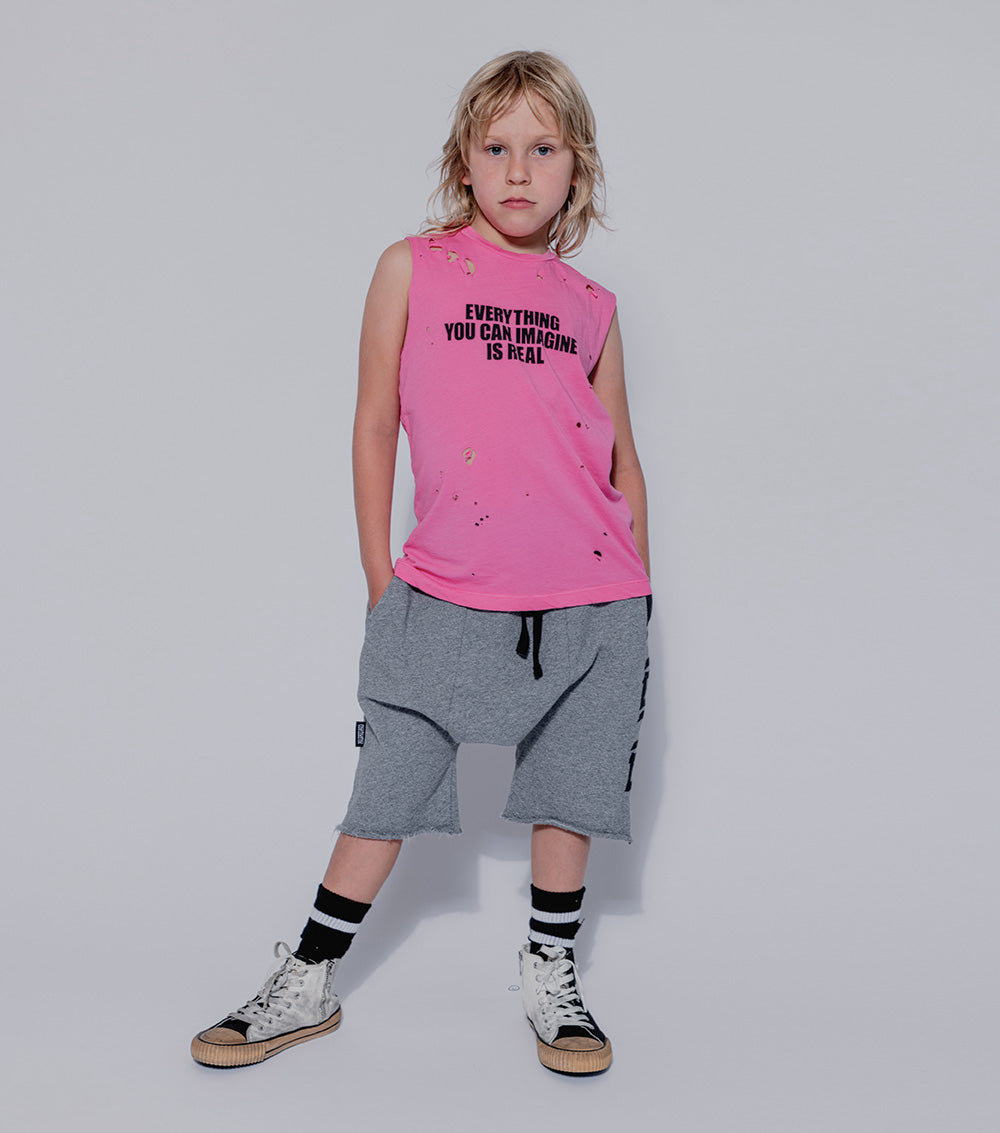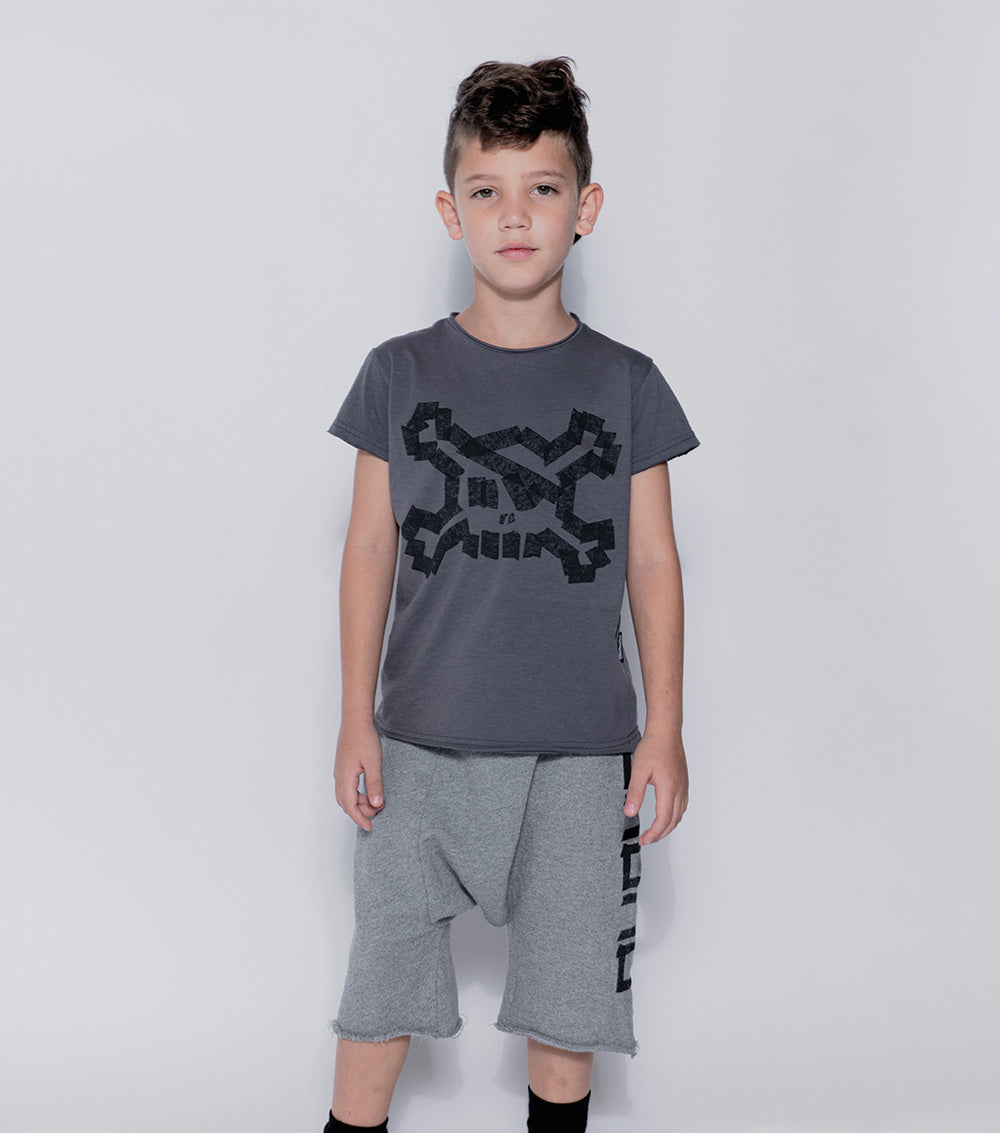 we do love a drop crotch, if only because it’s the loosest look you can imagine. these dusty heather grey, harem-style shorts will keep boys & girls running free all summer long, with their soft-as-hell terry, long-ass length & raw edges. our logo runs down the side in our masking-tape effect, which is our way of saying it’s cool to have fun & express yourself with whatever is lying around the house.