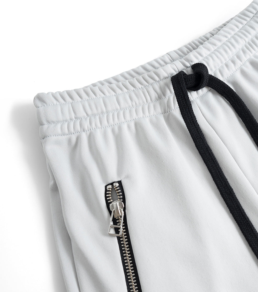 elastic waistband lace | raw edges | zip side pockets | drawstring
