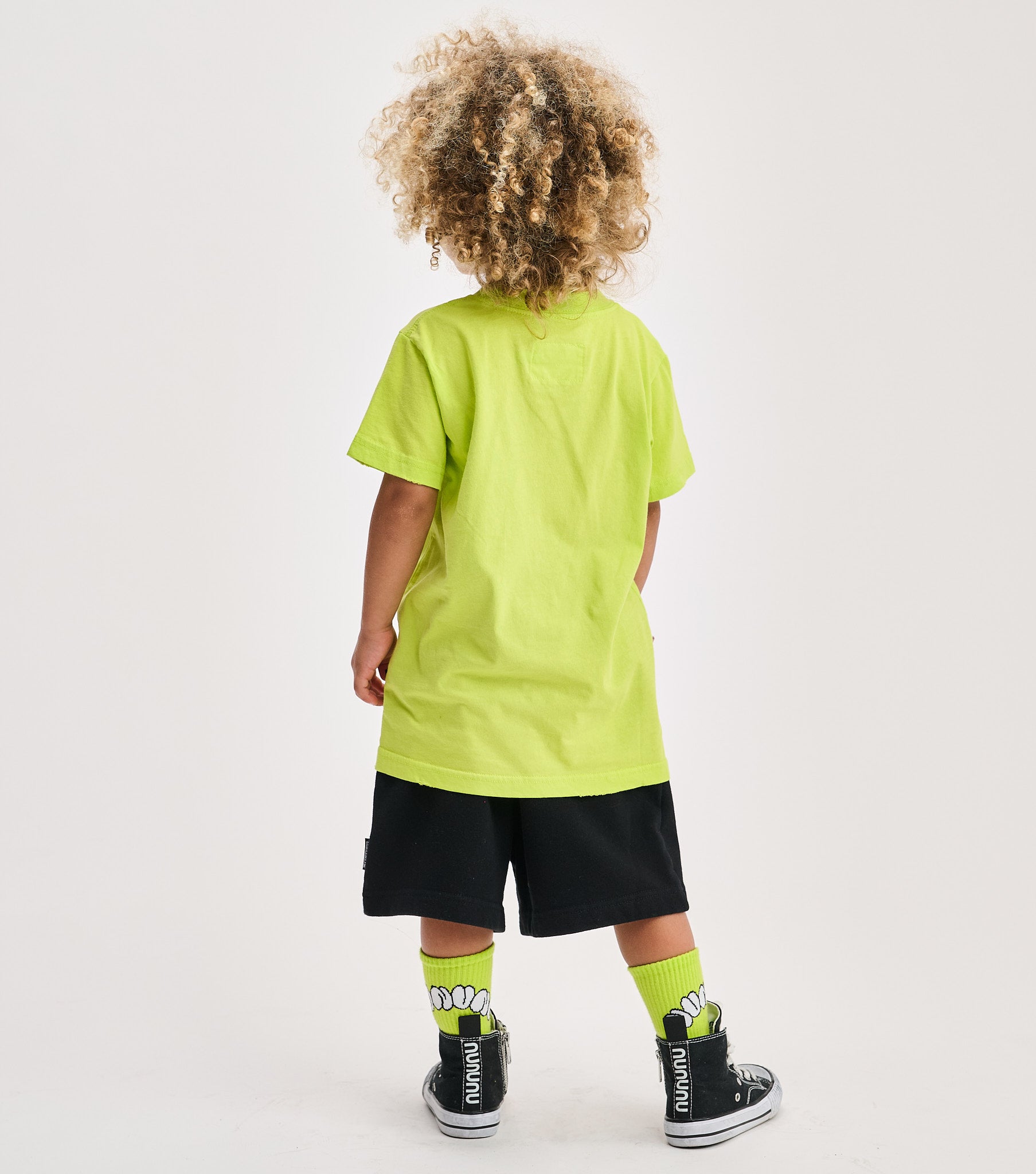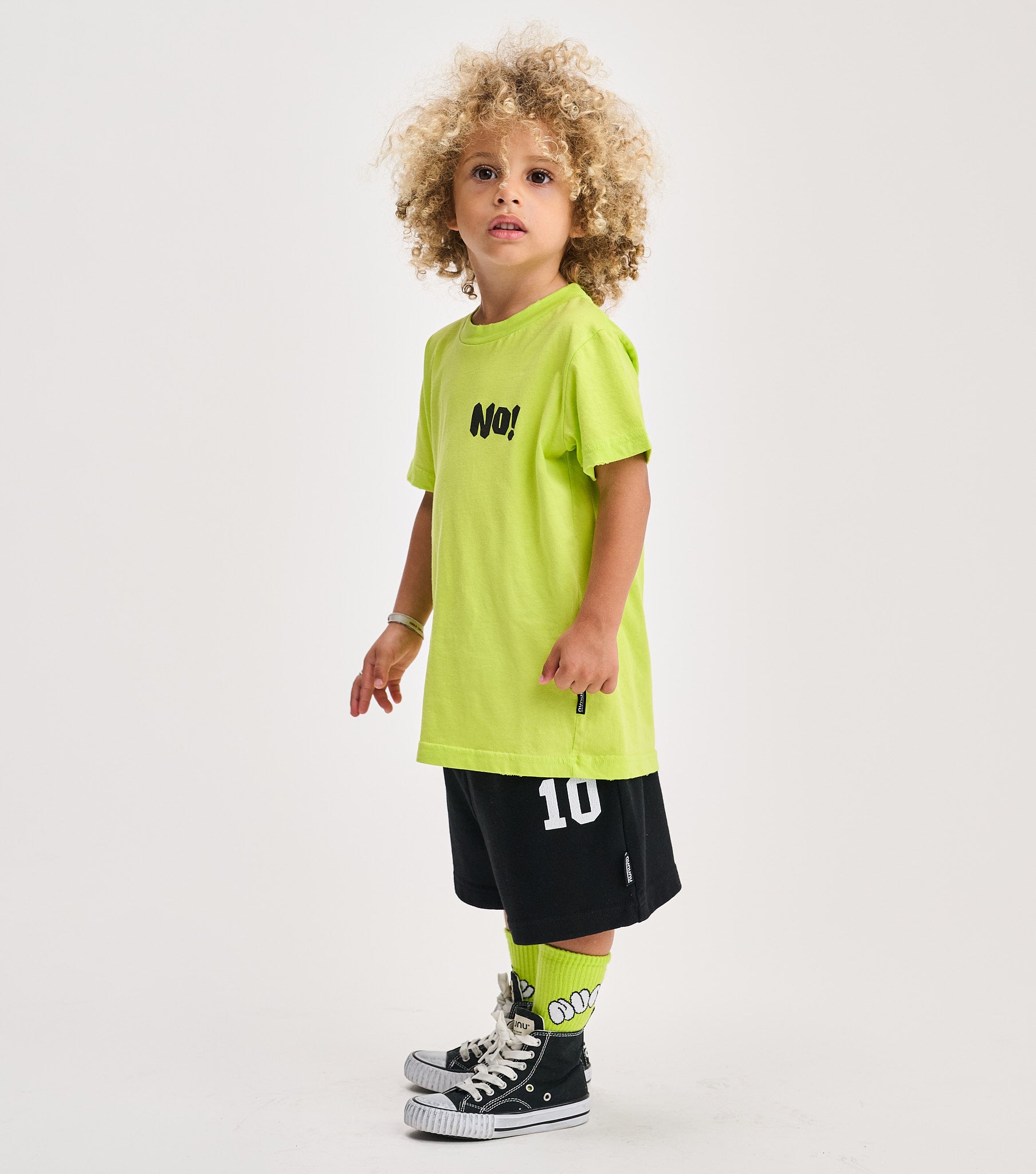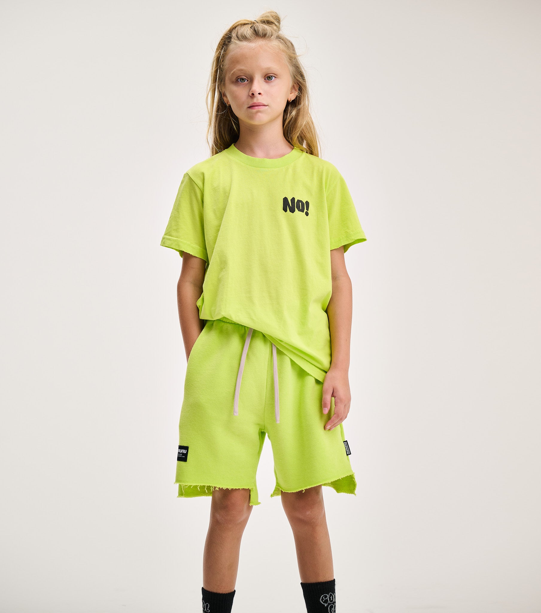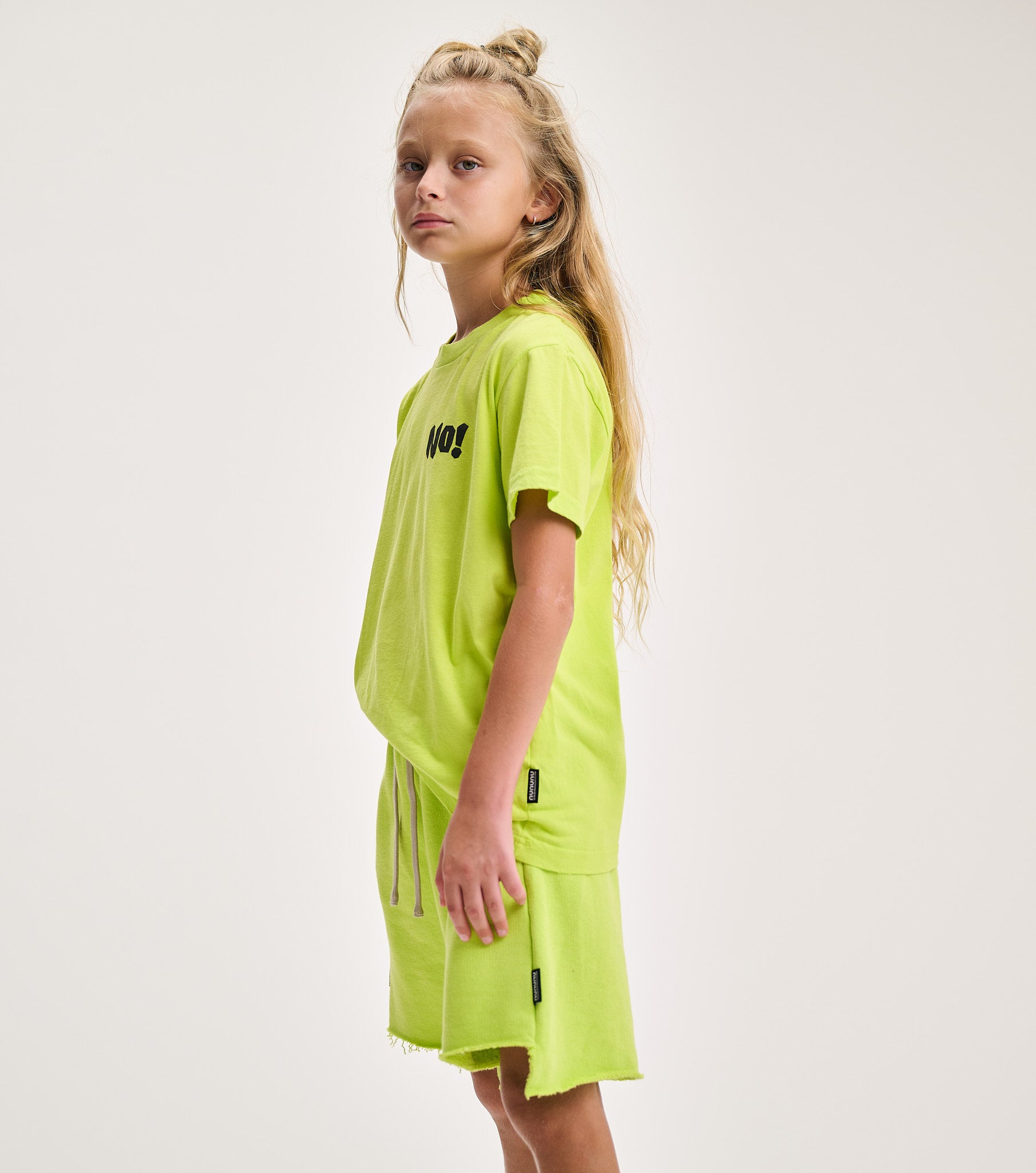 this fit is way too cool not to own. it’s a gender neutral cut made of soft hot lime single cotton with custom deconstruction to give it that lived-in look. your kid’s favorite word is exclaimed in a video game style font with lots of sharp corners & edges. because they’re rock solid at everything they do and fearless in everything they say. especially when it’s a no after being asked to let that screen go! .