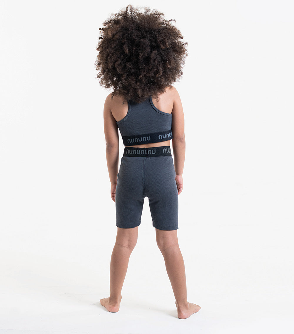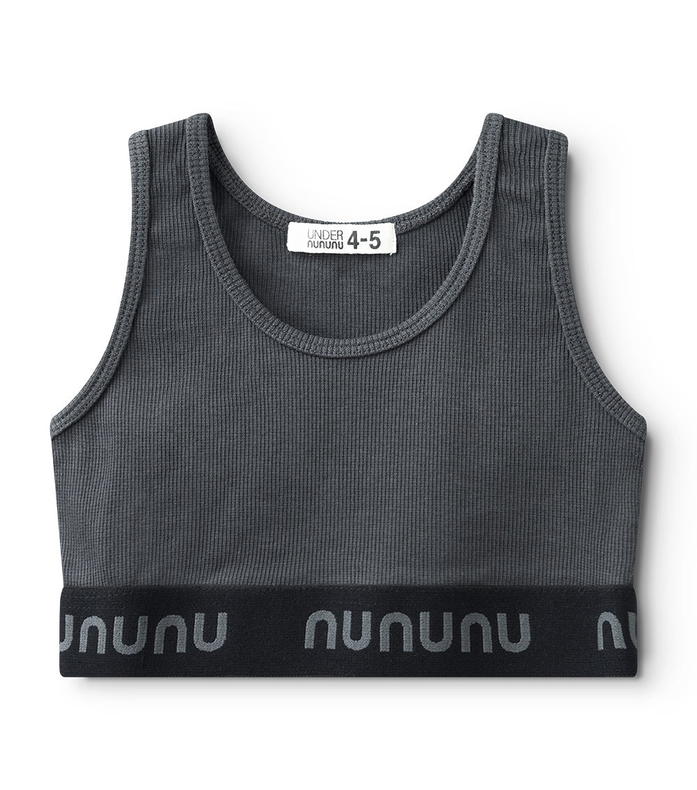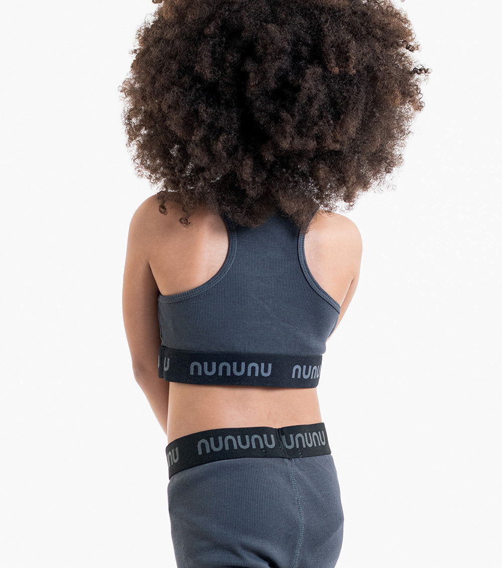 the ultimate under-layer comes in the form of the perfect half-undershirt. made of cozy, graphite-colored cotton with a ribbed texture, it’s got the ideal classic racerback cut, with a higher neck & clean edges. our logo elastic band finishes this bomb piece, which works as an underneath basic, or as a top unto itself. try matching briefs or leggings for the full effect.