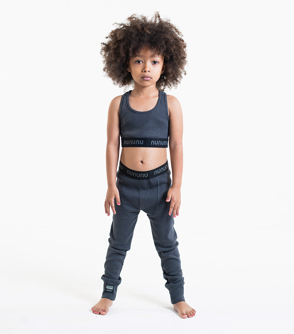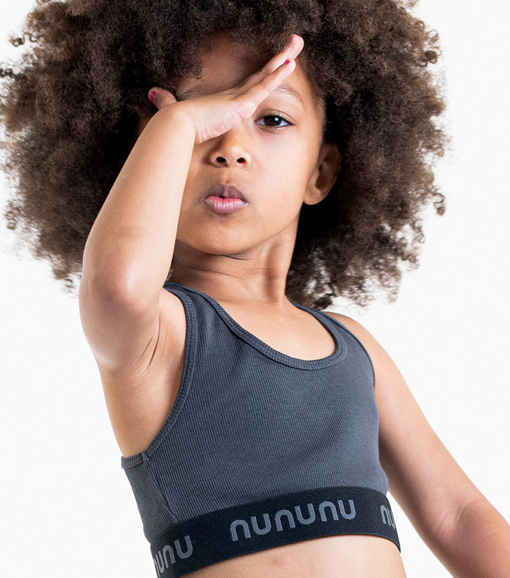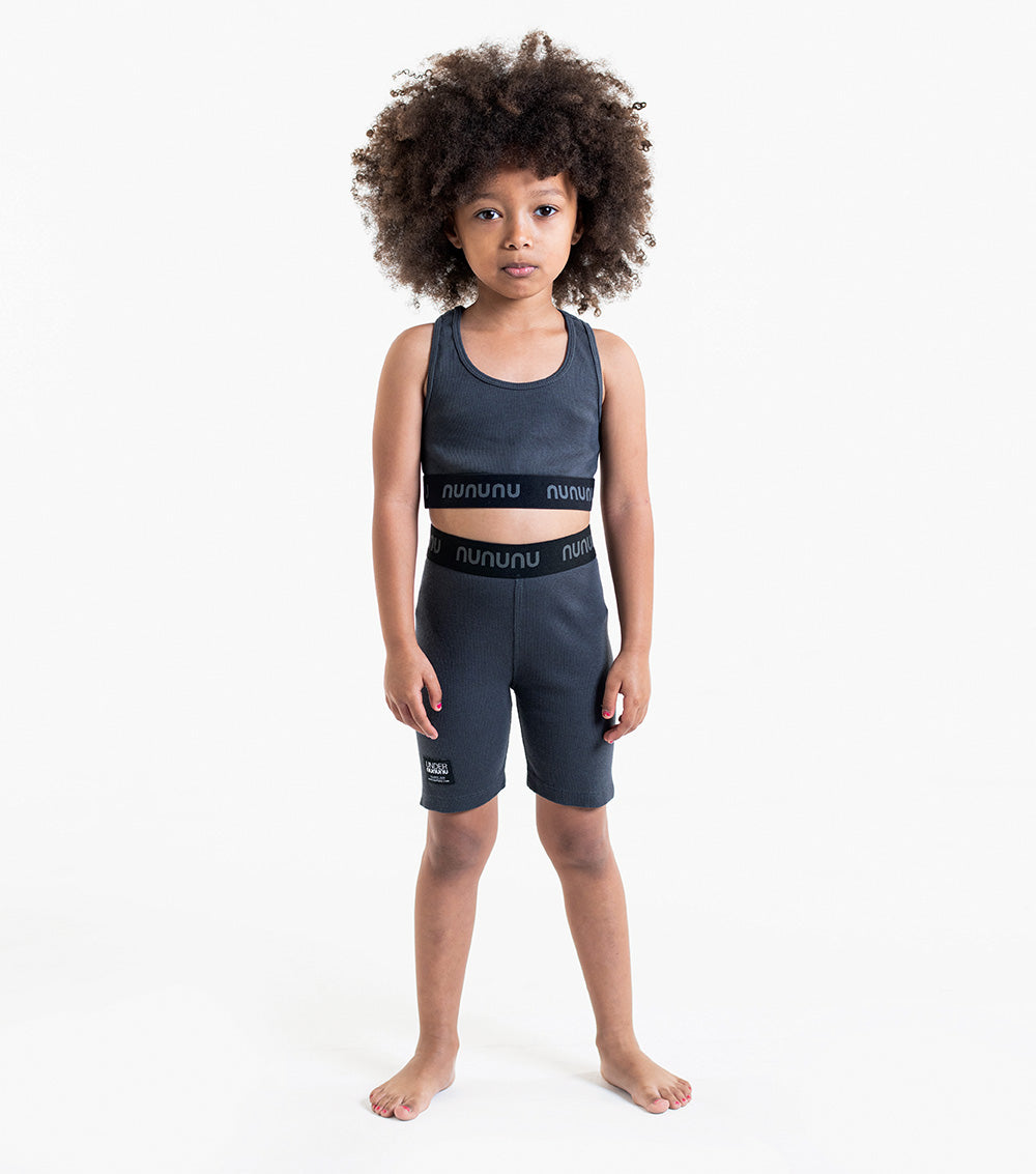 the ultimate under-layer comes in the form of the perfect half-undershirt. made of cozy, graphite-colored cotton with a ribbed texture, it’s got the ideal classic racerback cut, with a higher neck & clean edges. our logo elastic band finishes this bomb piece, which works as an underneath basic, or as a top unto itself. try matching briefs or leggings for the full effect.