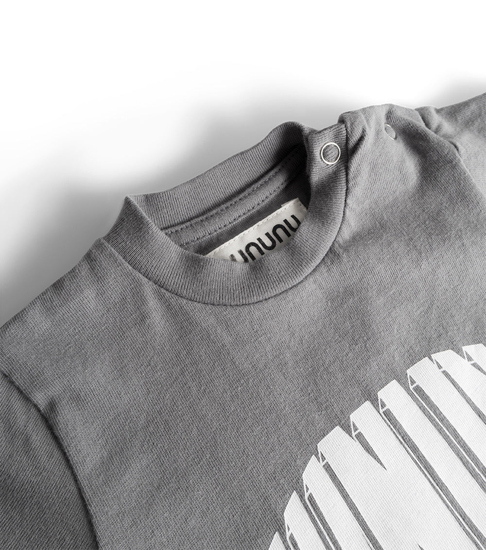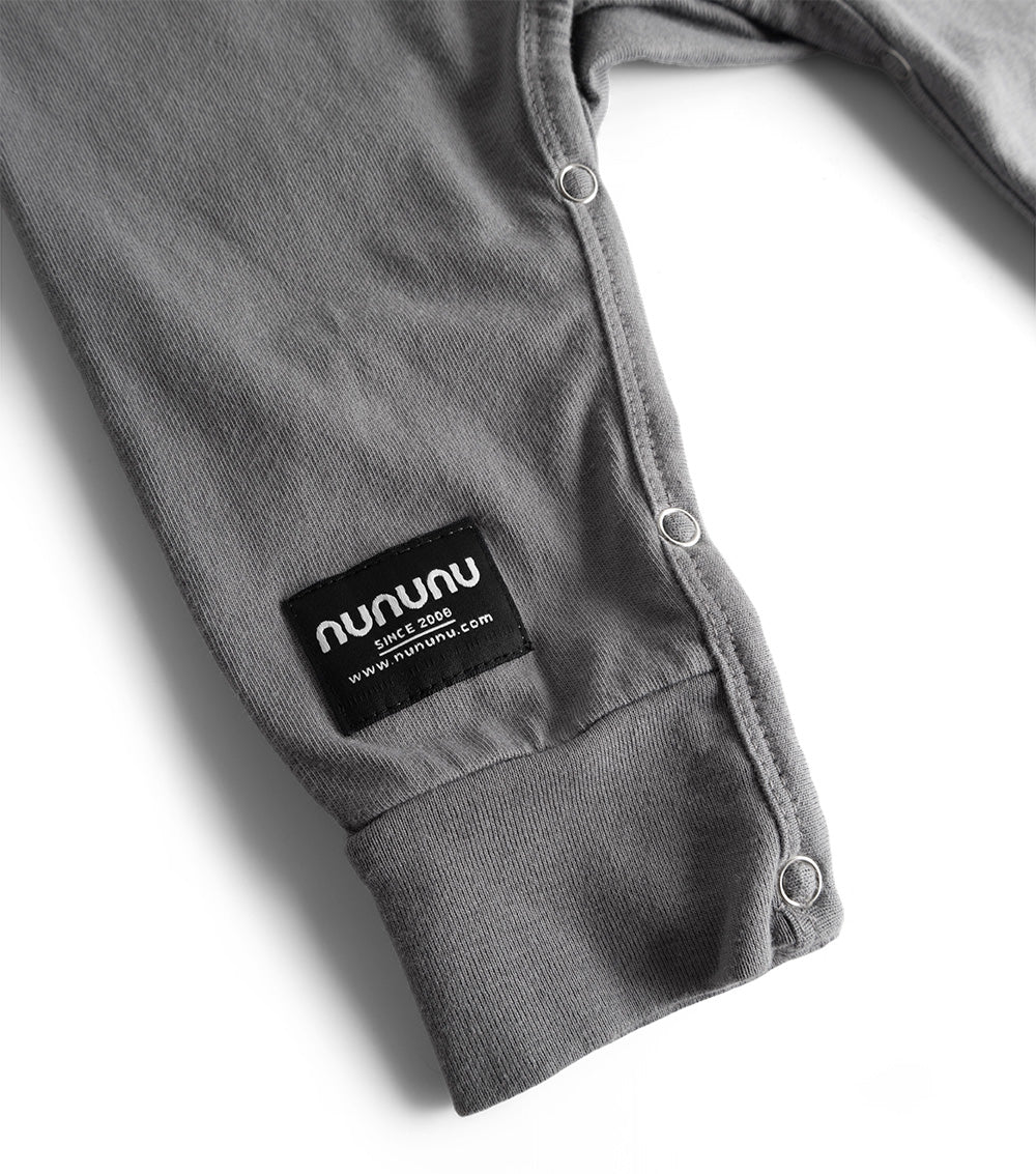 for the baby that is ready to rock, roll, and just plain jam out. we’ve got this super comfy gender neutral heavy single cotton number in concrete with some tie dye action. it’s got our totally rawk logo print in a 3d font which makes us want to jump on a couch & slam on an air guitar to our hearts content. anyway, it’s got jogger style cuffs with the nununu tag riding on the outside. plus snaps at the shoulder & all around the seam in between the legs so it couldn't be easier to change the little rock star wearing this fit.