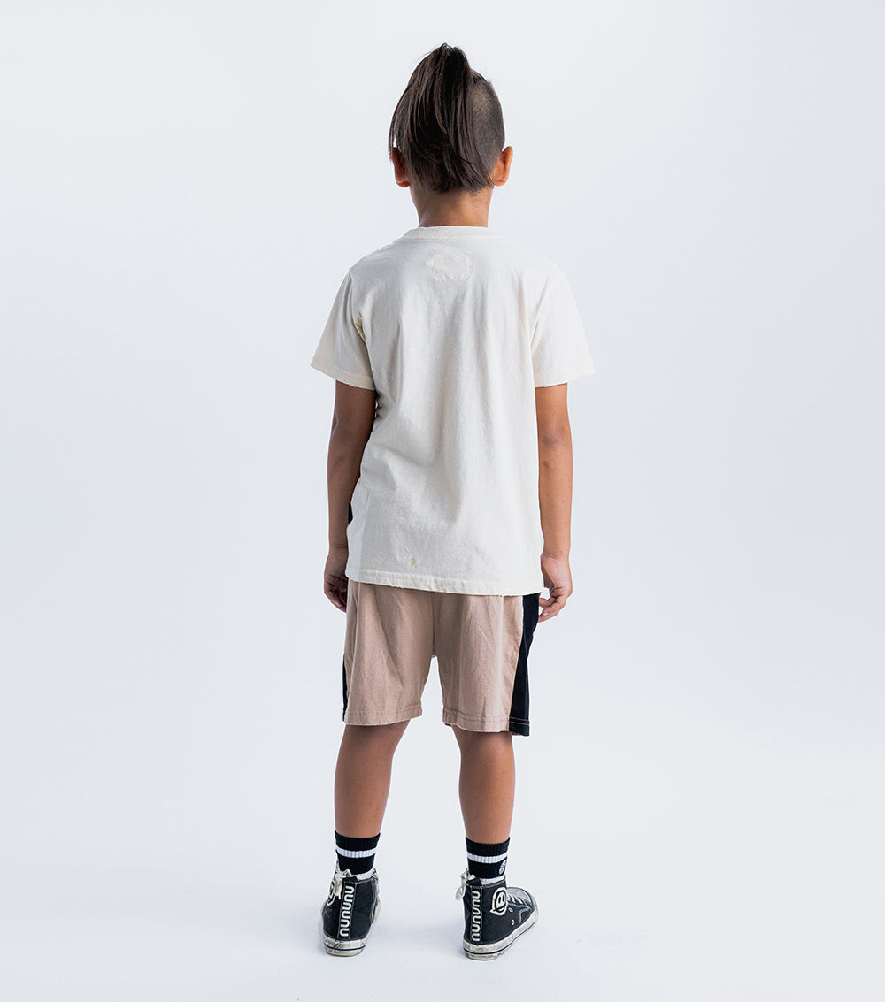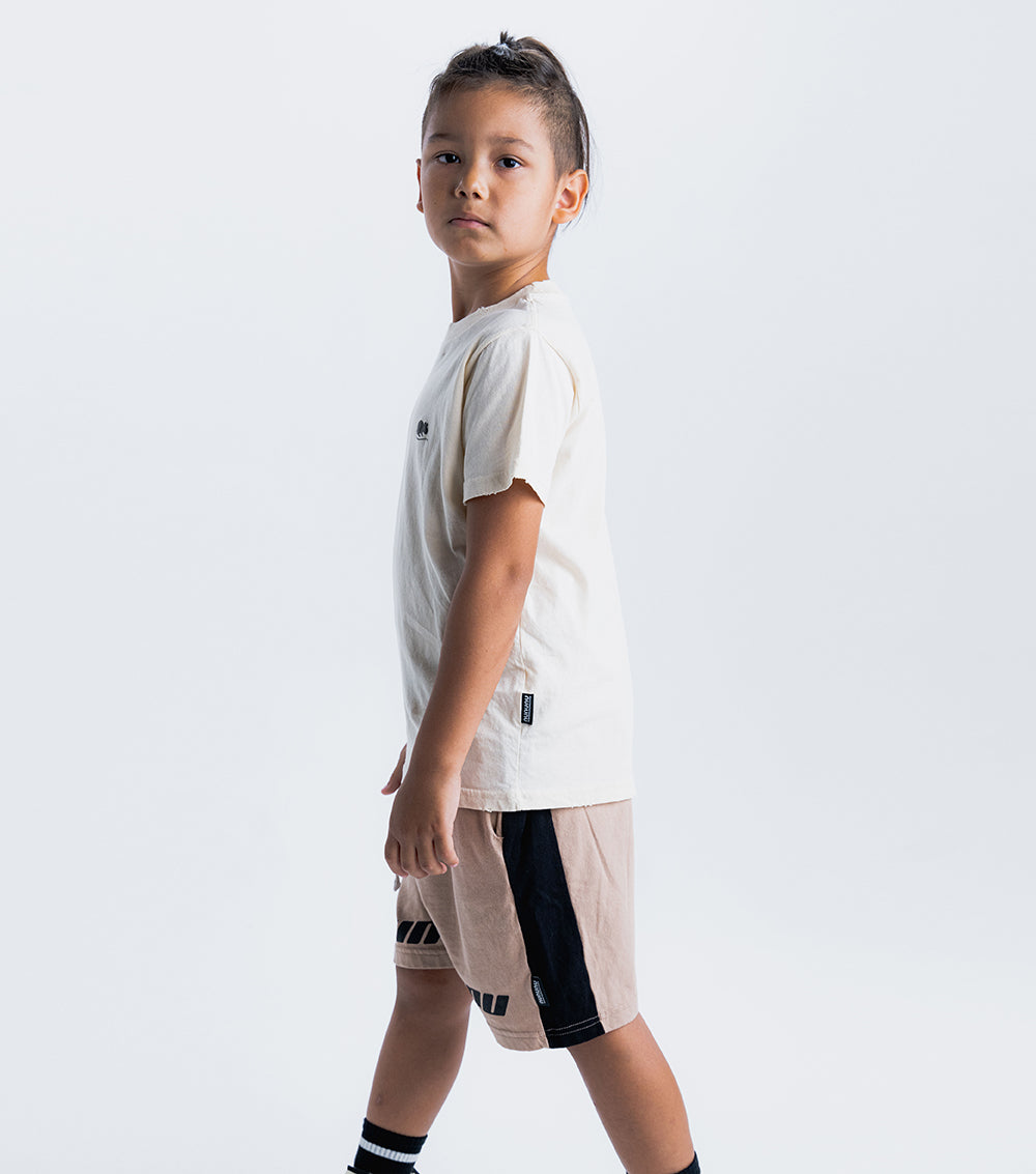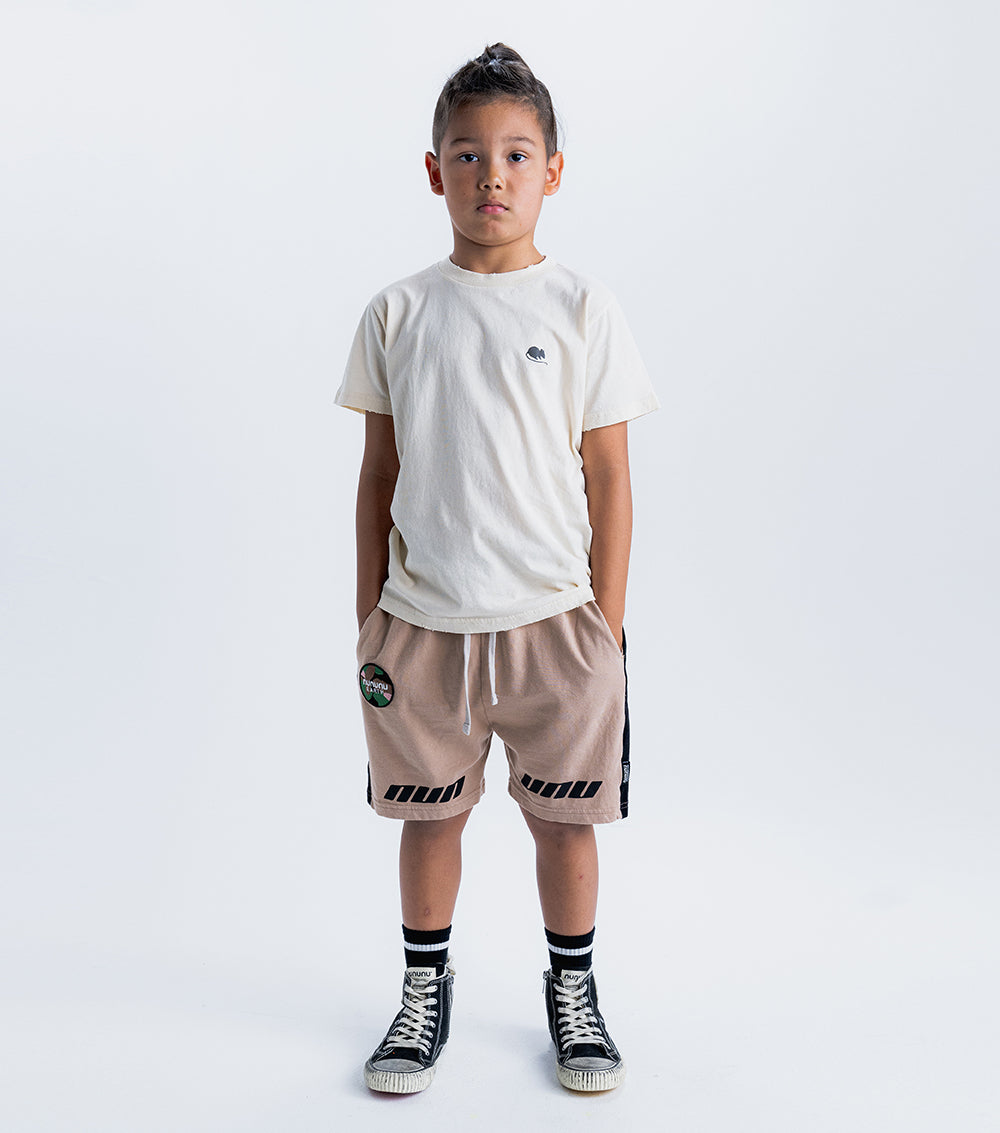 we’ve got an uncharacteristically understated look with this natural gender-neutral single cotton t that almost squeaks back. peep the lil mouse embroidered on the chest to see what we mean. the harder you look the cooler it gets, just like your kid. get up close and personal to check out the light deconstruction all around that makes this fit look perfectly nibbled on.