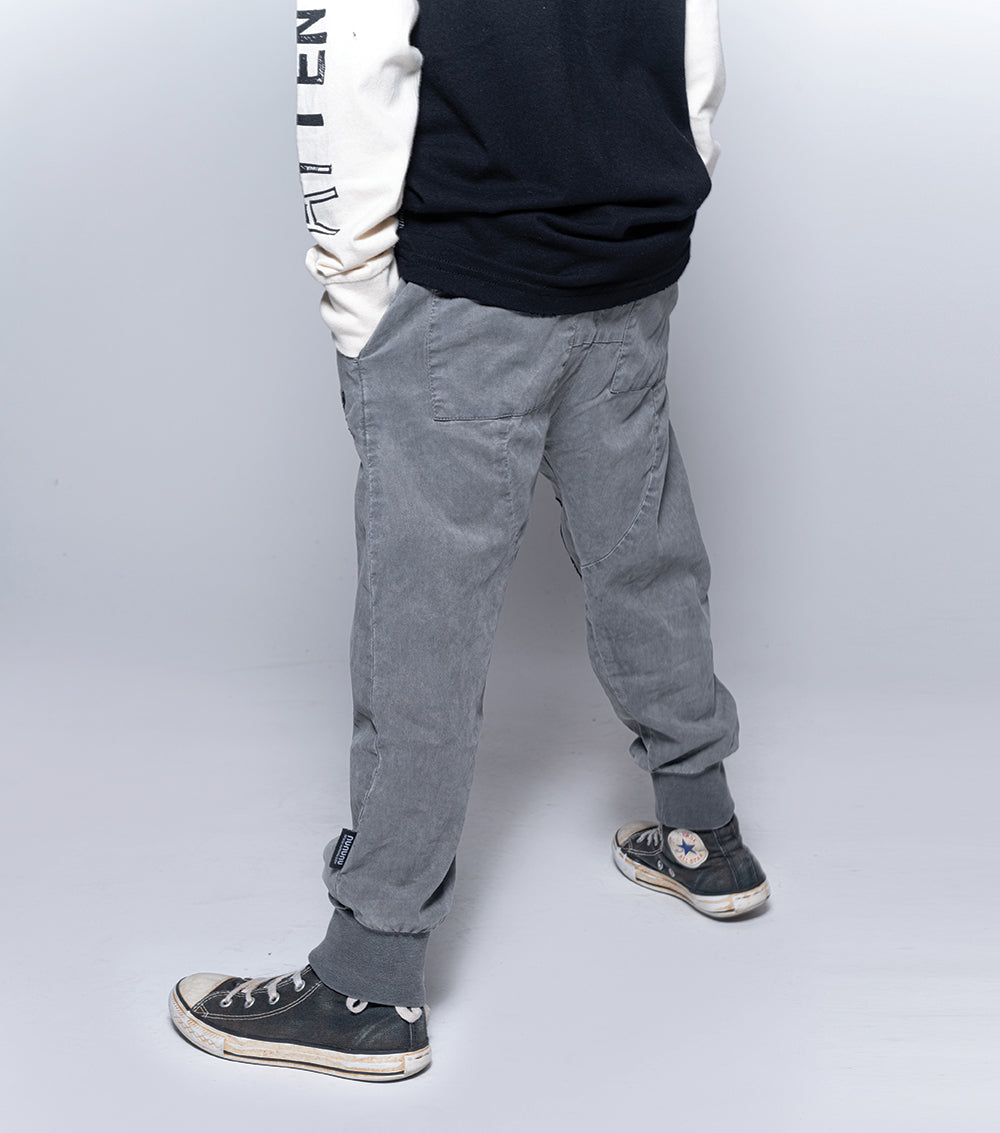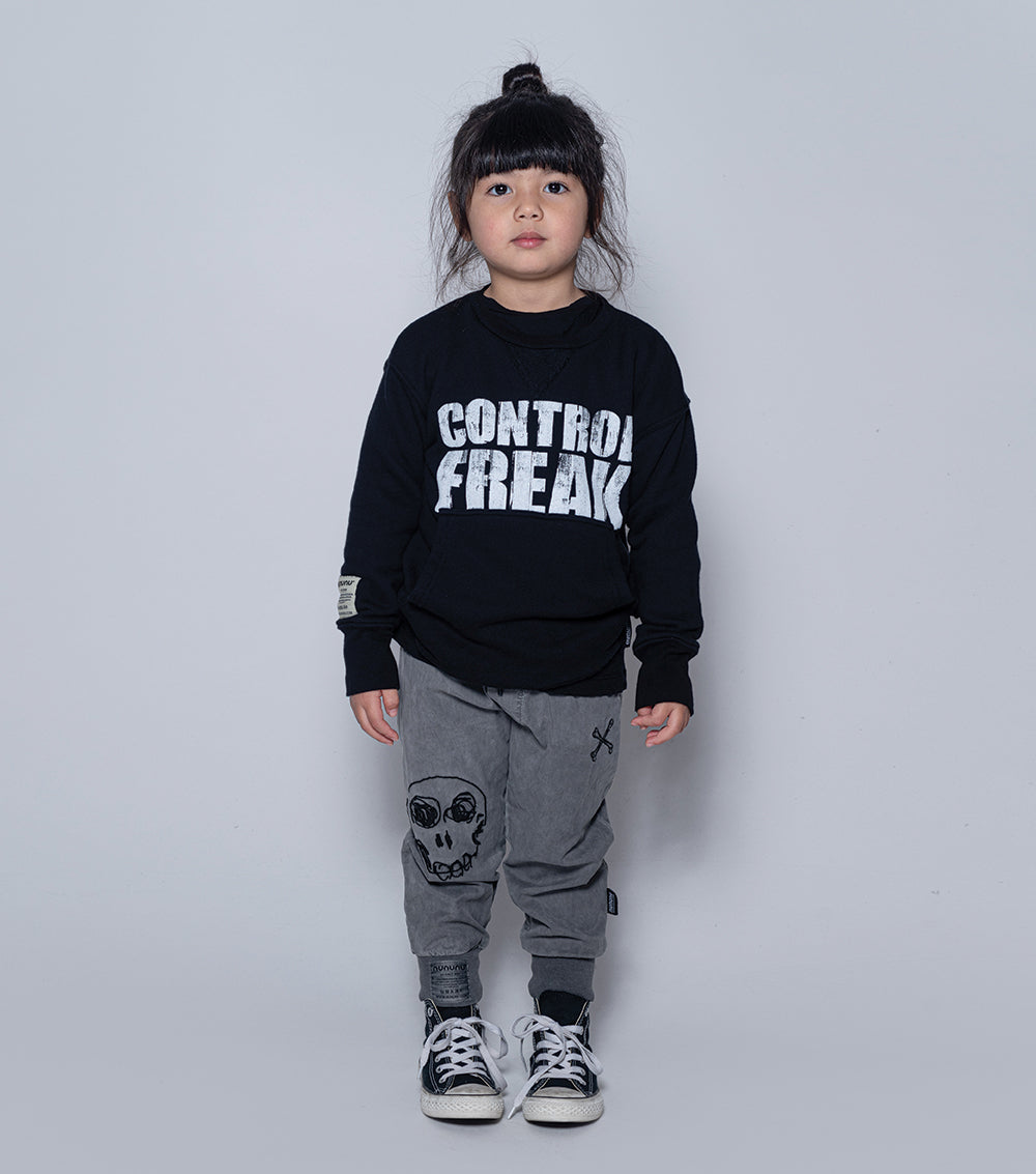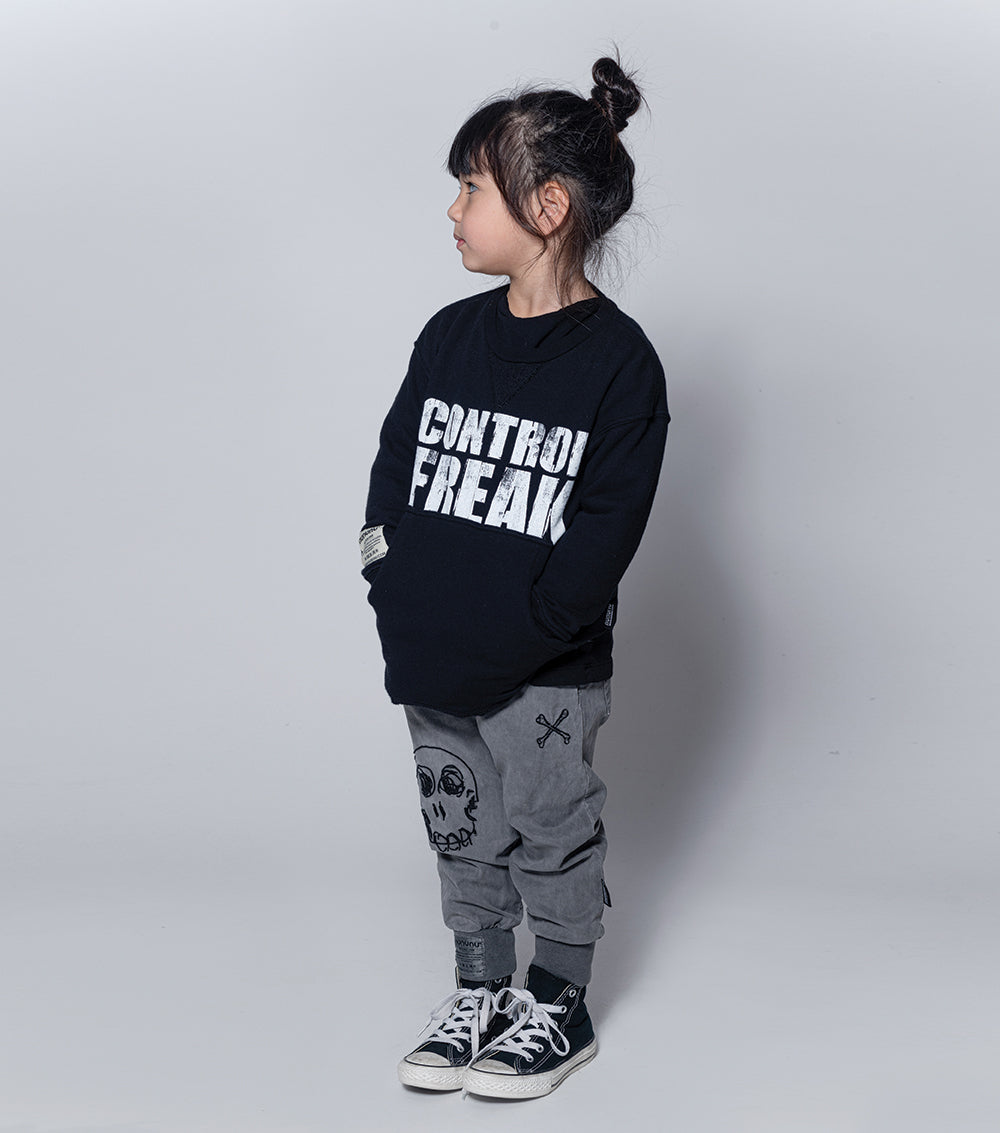 these vintage grey pants bring boys & girls all kinds of symbols & signs of the times. made of thickish and fluffy cotton for a good strong structure, they have side pockets & well-placed winter motifs like the dazed skull and crossbones both embroidered and add major twist. elastic cuffs and waist keep them criminally comfy and the care tag is sewn cleverly on the outside, placed down on the cuff, because we don’t do things like everyone else.