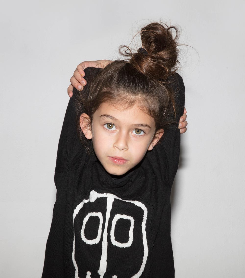 masks are a form of communication and we’re all about keeping the conversation going with this long sleeved black shirt in a light, summer weight knit for boys & girls. it features a graphic skull we created with artist Shay Id Alony - the print combines the artist’s tribal bent with our own nonstop skull obsession, in ghostly white for contrast. this print is part of our on-going collaboration with international artist shay id alony with whom we are proud to partner with. for more about shay click here