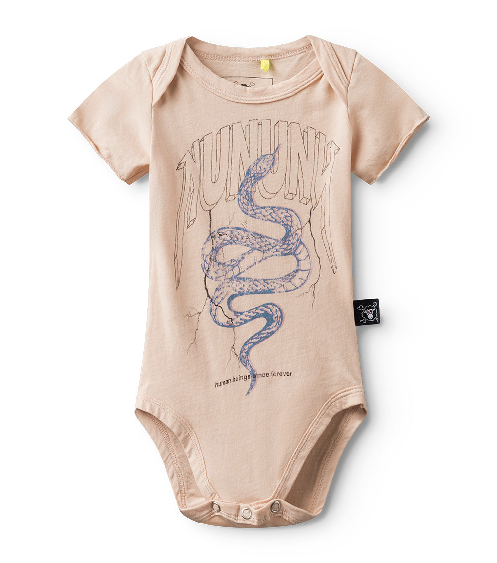 did you know snakes are a symbol of rebirth & transformation? for us, that’s the spirit of summer ‘23, and the reason why we have this powerful creature slithering on this baby nude onesie. it’s a classic shape that goes on with zero friction. snaps at the crotch make diaper changes a no-fuss situation, and shoulder flaps let you pull it down from the top—whatever’s easiest in the moment.