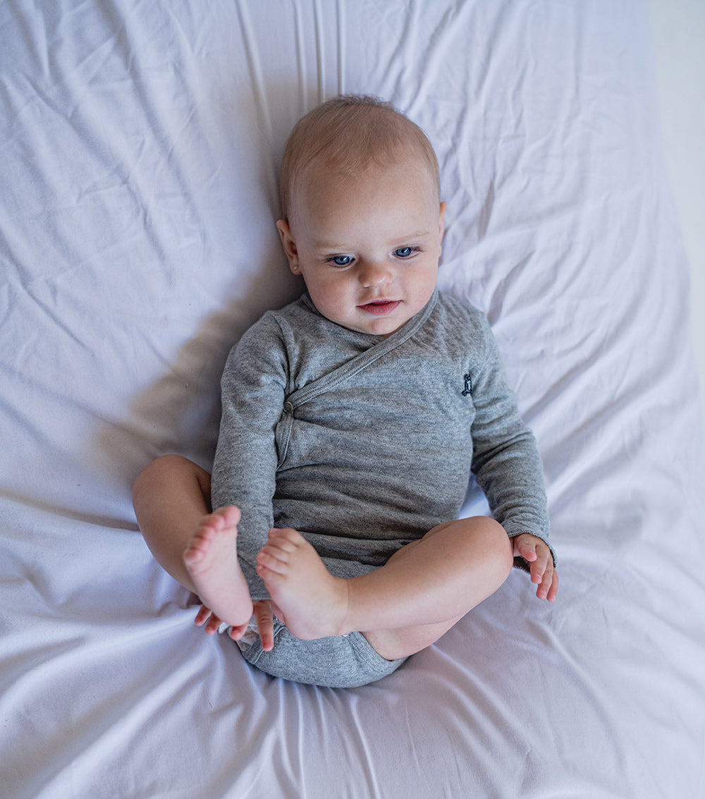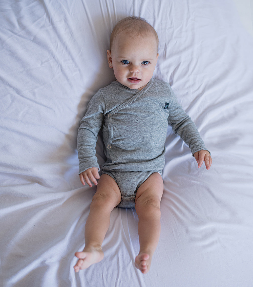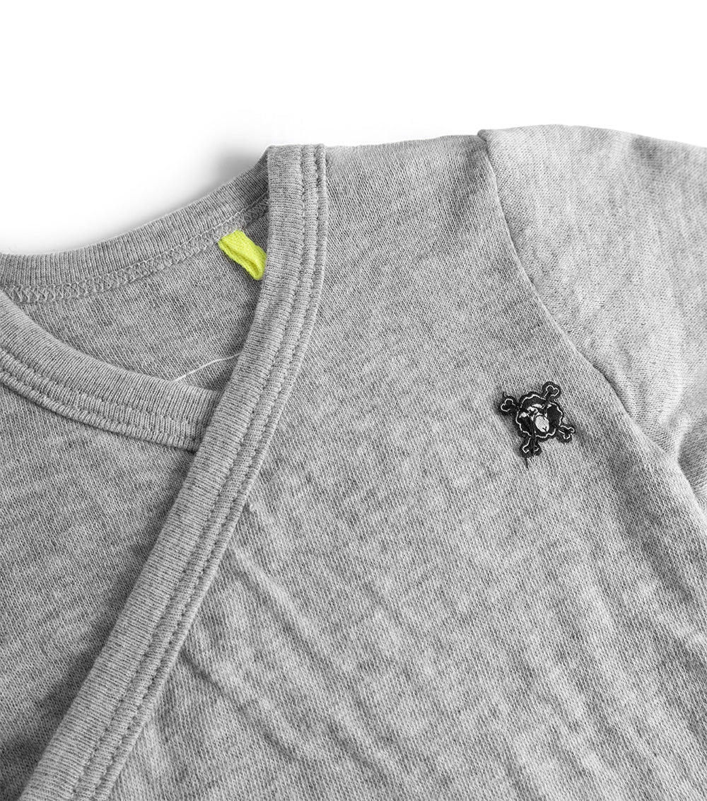 signed, sealed, delivered. your package has arrived. swaddle the small one in our excellent envelope onesie in heather grey. luxurious, super soft double-single cotton keeps the kid nice & cozy, like a constant hug, as they squirm & take in their strange new surroundings. side & crotch snaps make it easy to unwrap this fashionable look.