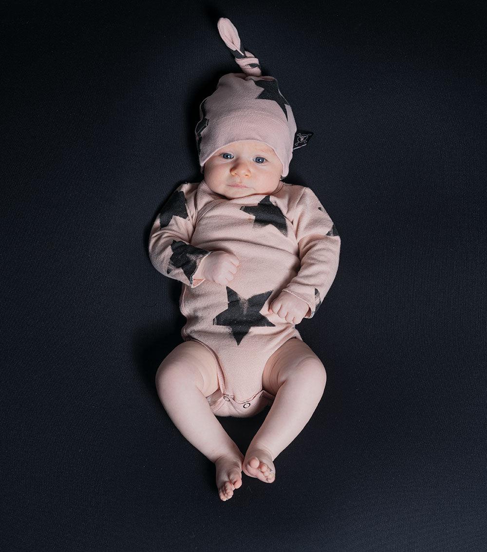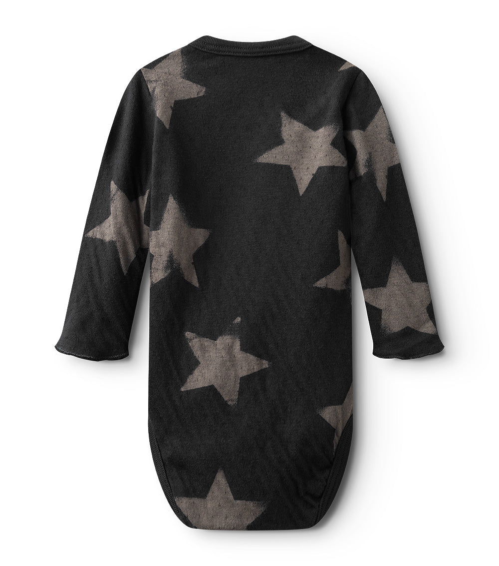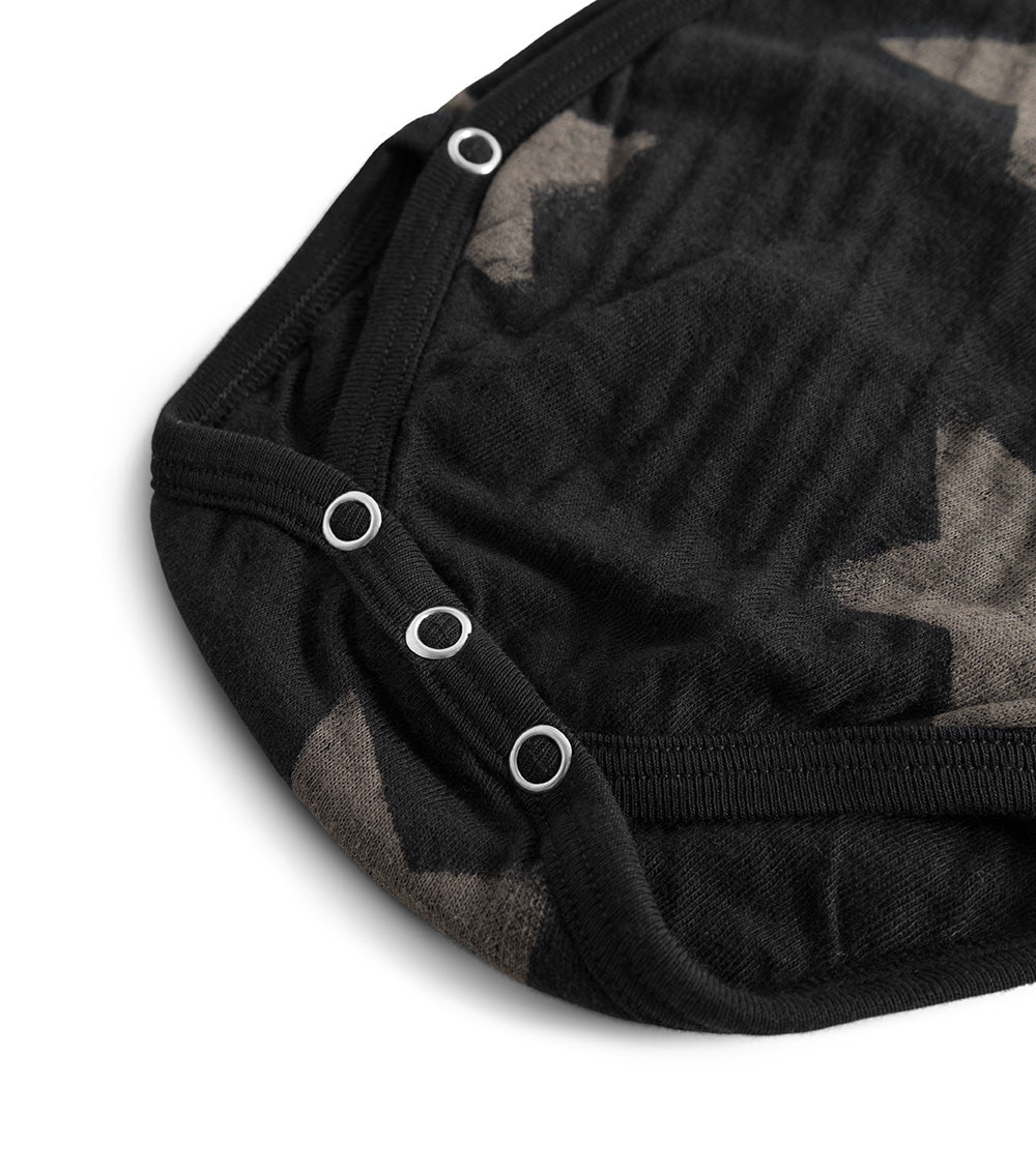 signed, sealed, delivered. your package has arrived. swaddle the small one in our excellent falling star envelope onesie in solid black. Luxurious, super soft double-single cotton keeps the kid nice & cozy, like a constant hug, as they squirm & take in their strange new surroundings, blissfully unaware. side & crotch snaps make it easy to unwrap this fashionable look, finished with our tiny blacksheep patch at the chest—an omen of what’s to come?