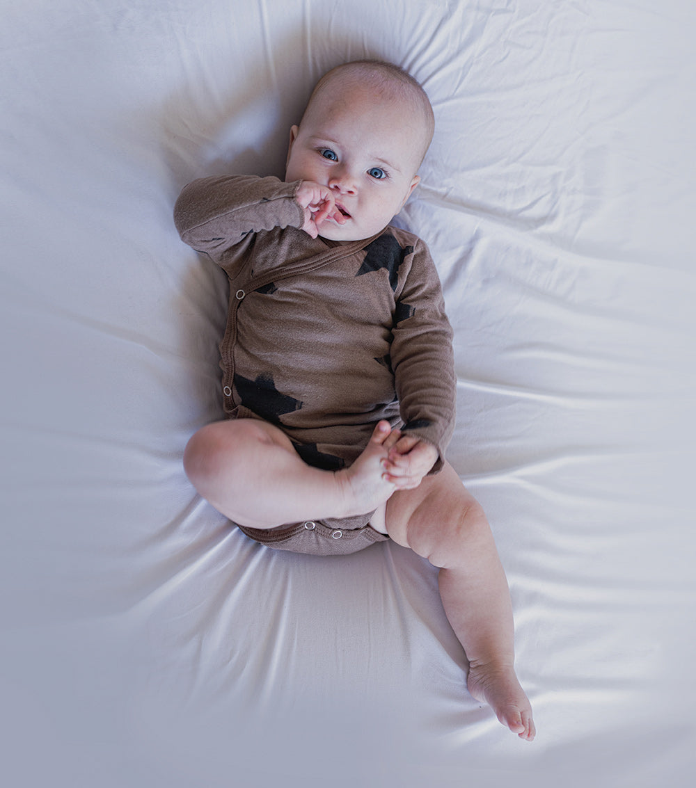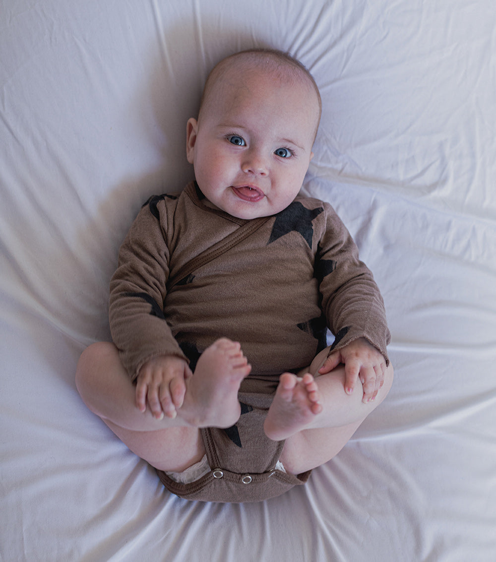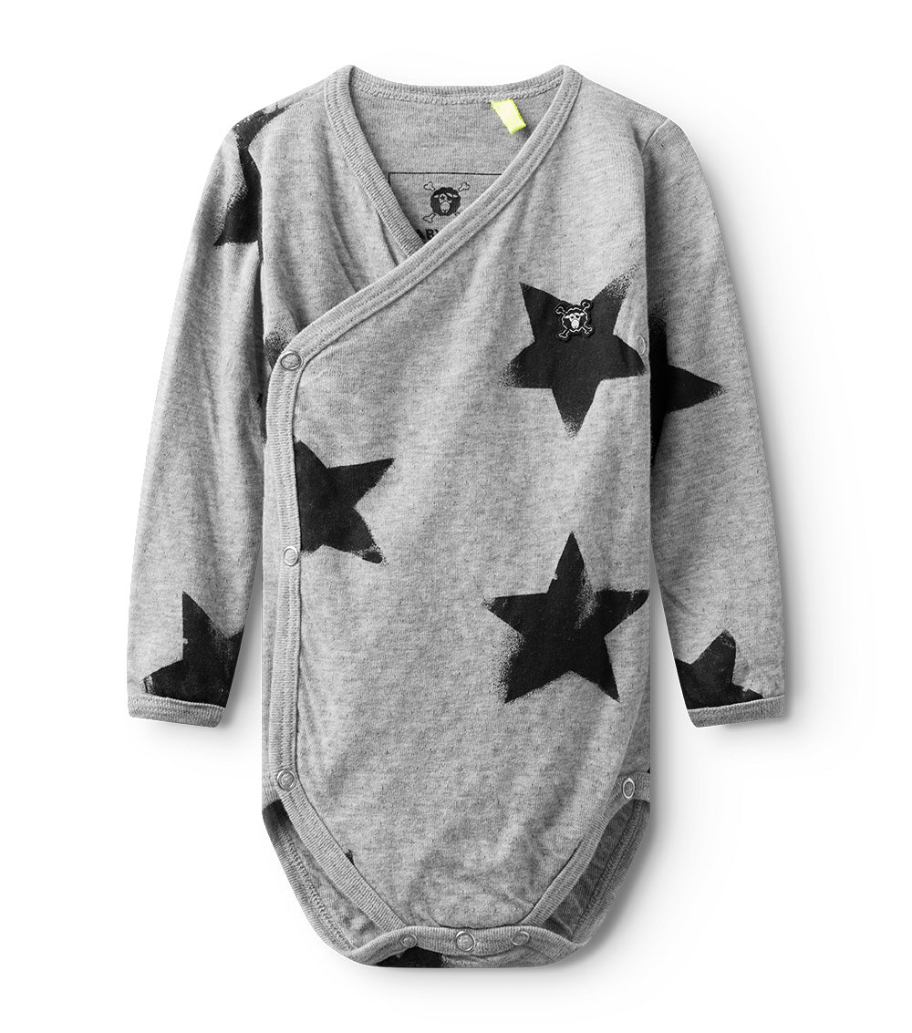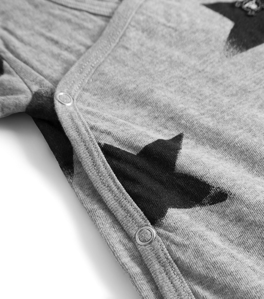 signed, sealed, delivered. your package has arrived. swaddle the small one in our excellent falling star envelope onesie in solid heather grey. Luxurious, super soft double-single cotton keeps the kid nice & cozy, like a constant hug, as they squirm & take in their strange new surroundings, blissfully unaware. side & crotch snaps make it easy to unwrap this fashionable look, finished with our tiny blacksheep patch at the chest—an omen of what’s to come?