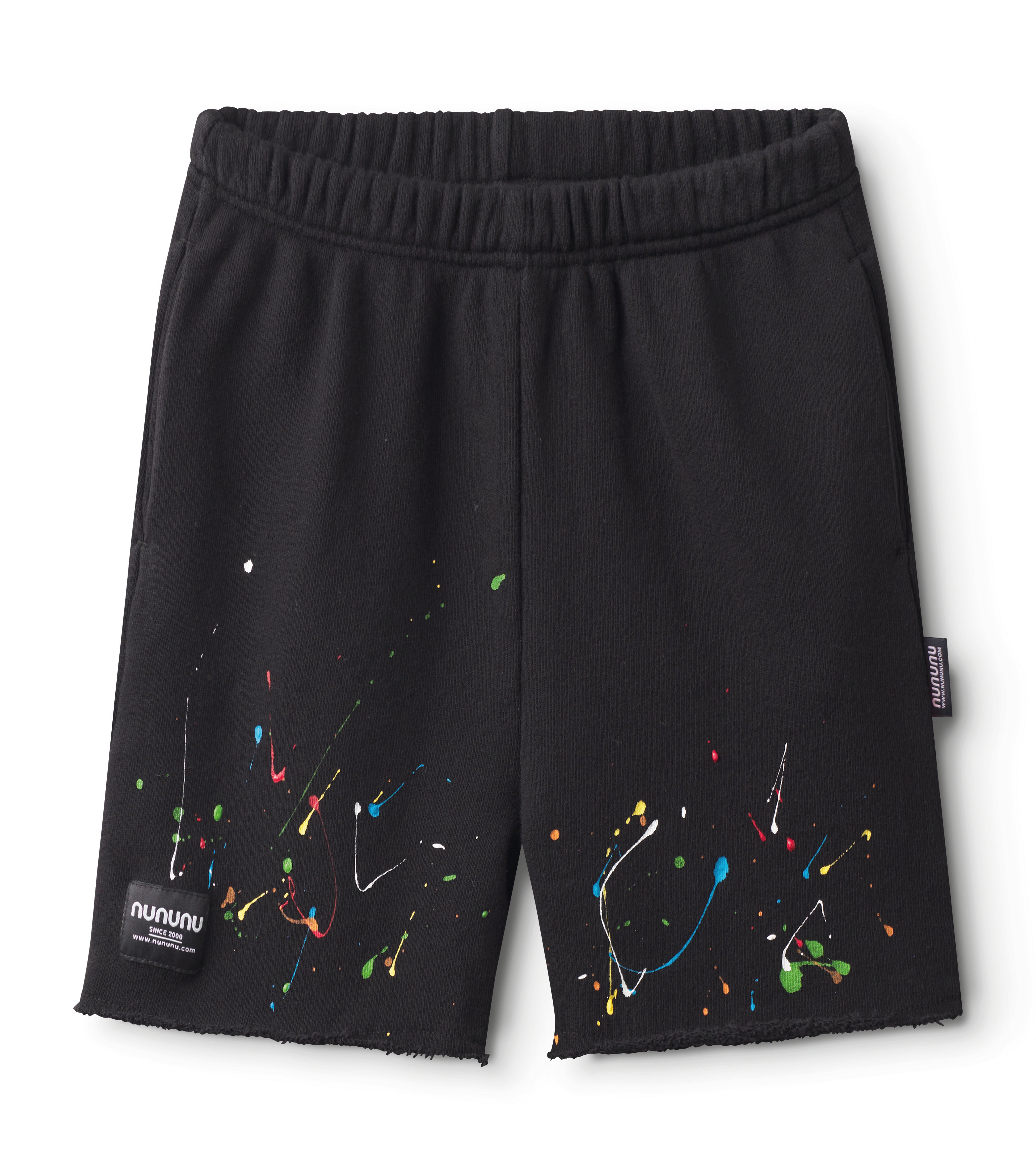 back to black? hell yes. but how about a splash of color to go with it? that’s the vibe of these epic shorts, a perfect fit for your little artist. they’re a gender neutral cut made of super soft black french terry with totally rad colors handsplashed across the bottom of the front. plus, side pockets are perfect for storing tiny sketchbooks & tubes of paint borrowed from art class. of course, we kept it simple with a stretchy cinched waistband and a tag riding on the outside. all so we can claim artistic license for this absolute masterpiece.