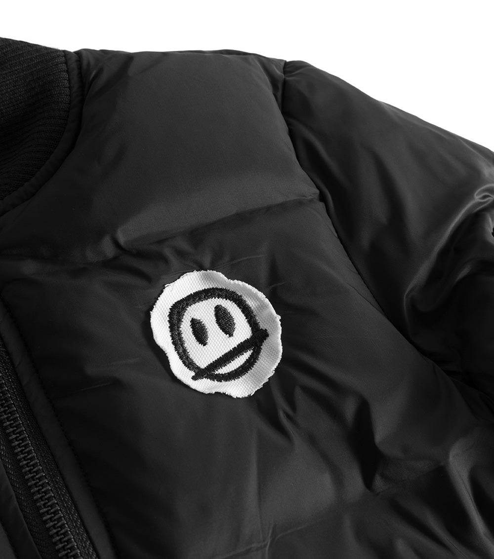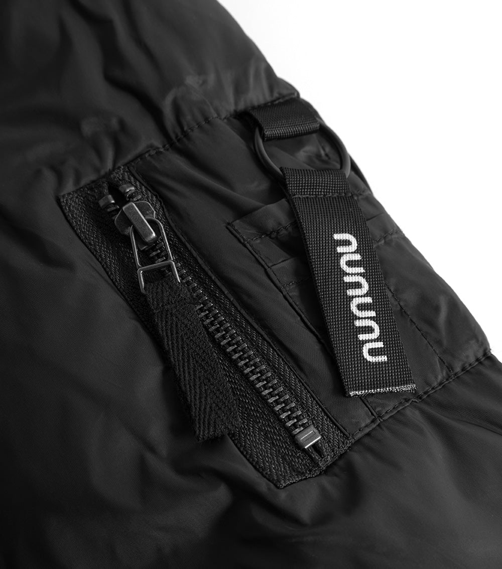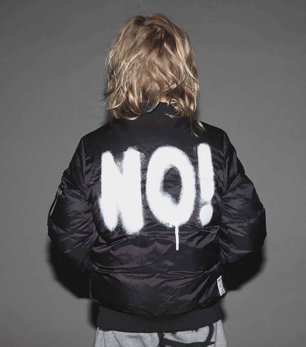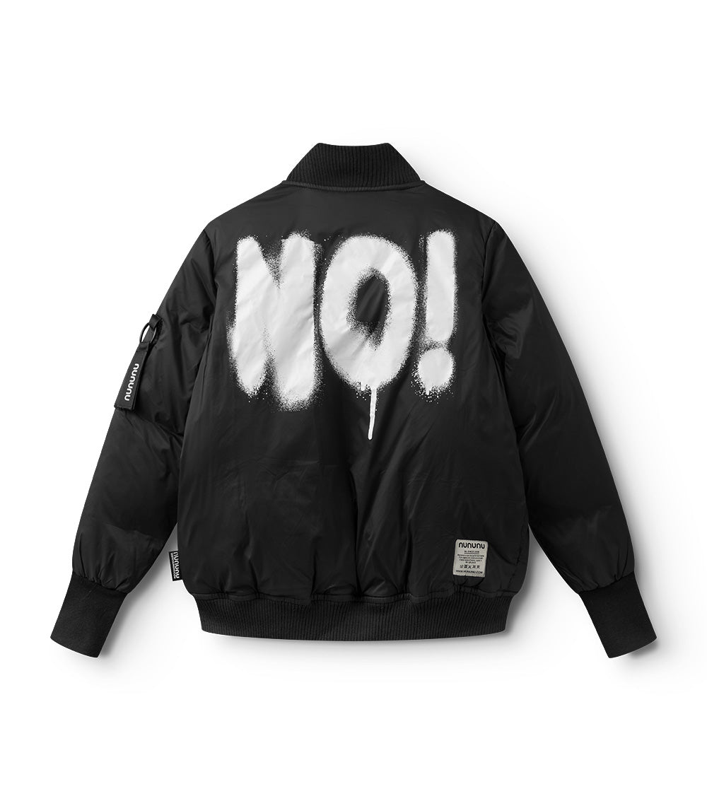 boys & girls, this is it, the ultimate black down bomber jacket, with all the nununu details. you’ve got the smile patch on the chest (though ours is more like a smirk), and the drippy “no!” sprayed on the back. meanwhile, the cut is cozy & keeps you warm down to -10℃ (14℉). no worries about overheating though—we’ve got shoulder straps inside so kids can take it off and wear it like a backpack so they don’t lose this killer piece.