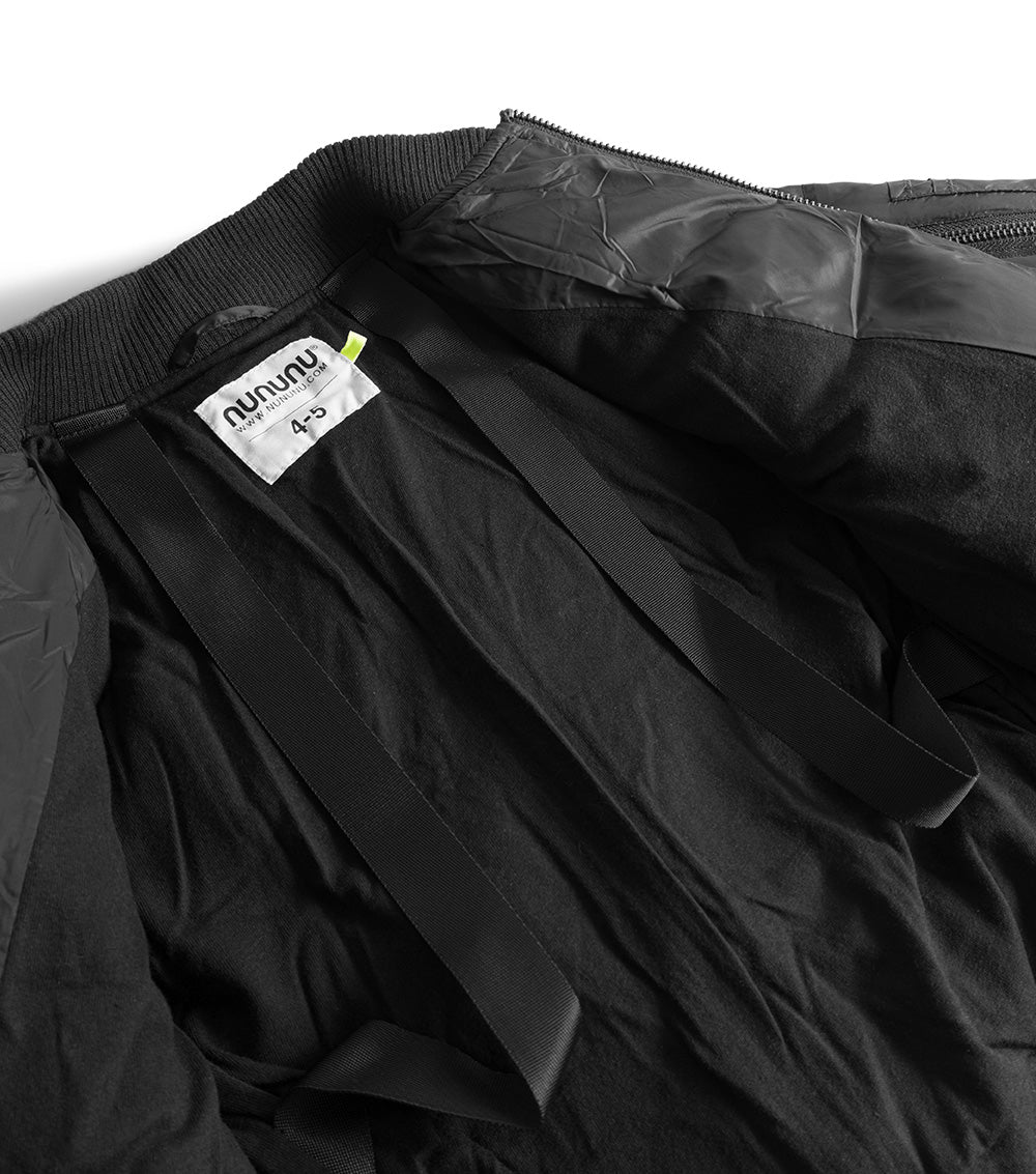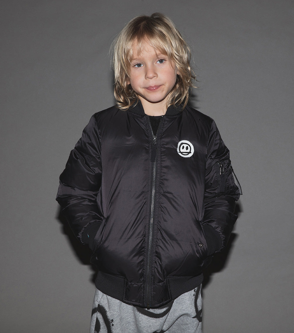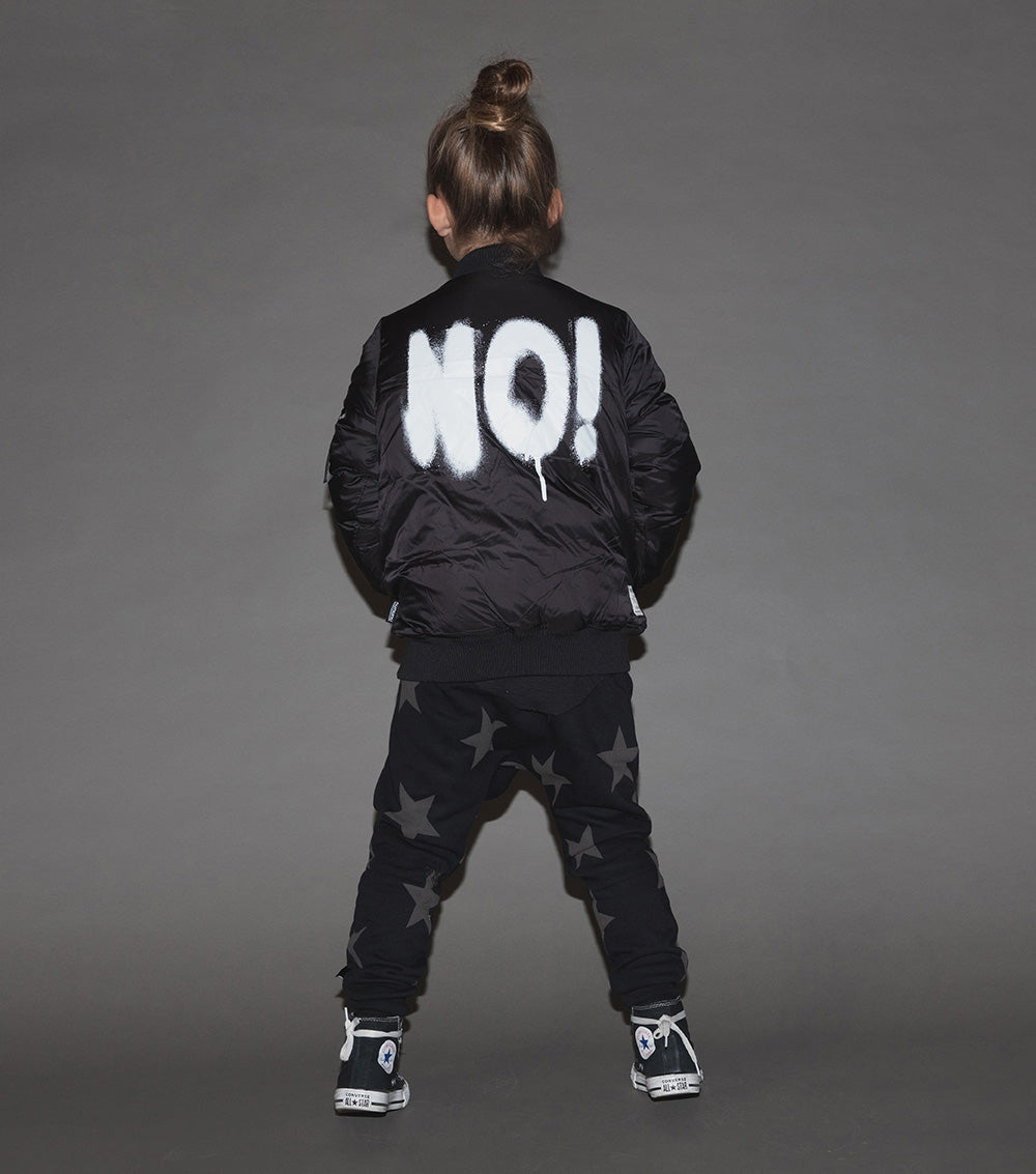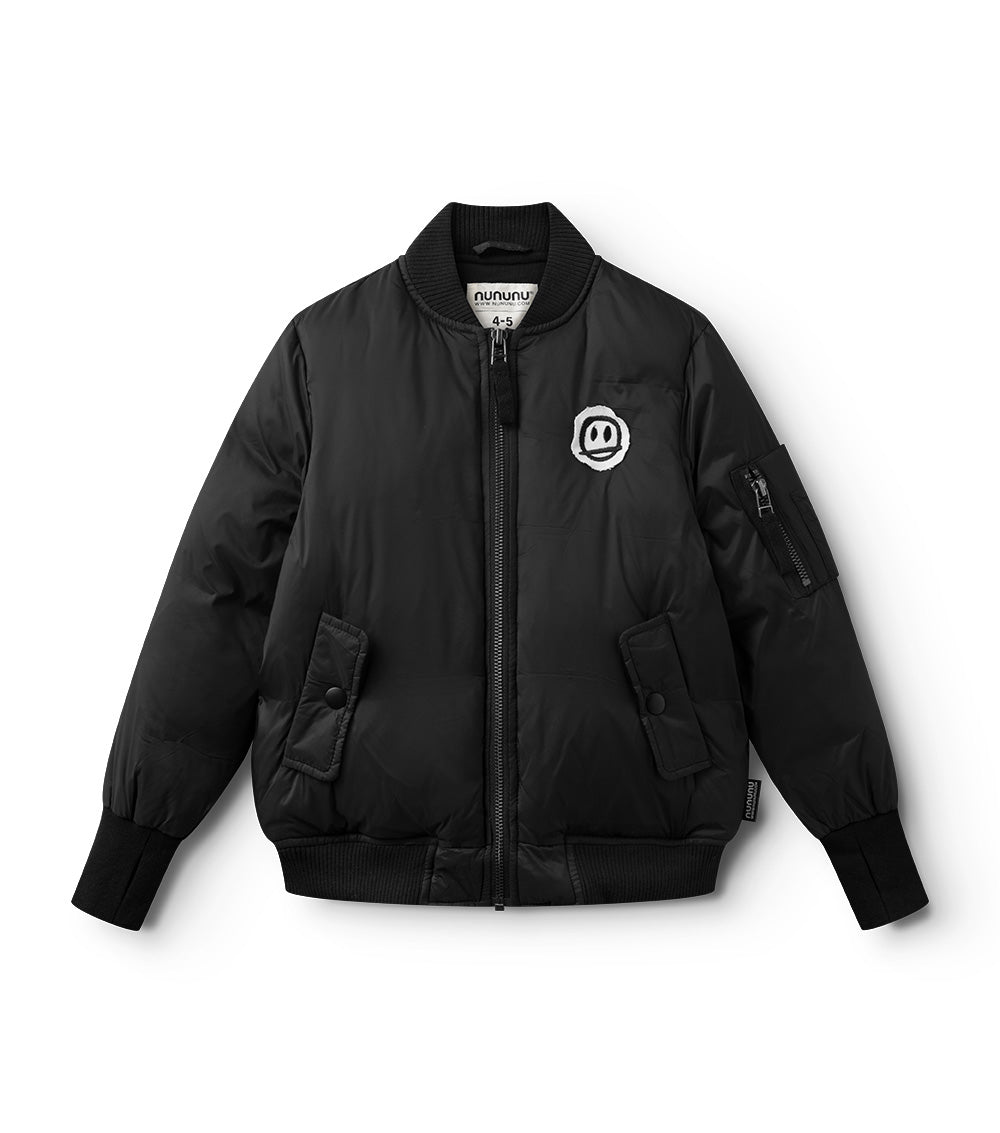 boys & girls, this is it, the ultimate black down bomber jacket, with all the nununu details. you’ve got the smile patch on the chest (though ours is more like a smirk), and the drippy “no!” sprayed on the back. meanwhile, the cut is cozy & keeps you warm down to -10℃ (14℉). no worries about overheating though—we’ve got shoulder straps inside so kids can take it off and wear it like a backpack so they don’t lose this killer piece.