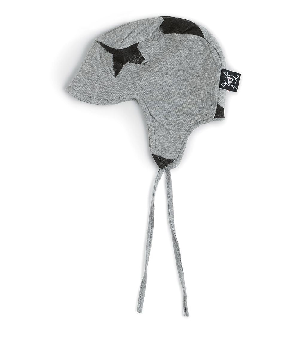 let’s protect the great minds of the future in style, shall we? this heather grey cotton flap hat for babies adds a lot of swag for a functional item. it ties under the chin for some extra security and its sizable bill & back flap keep the kid protected from the sun. it’s got our signature star print all over—baby stays shining.