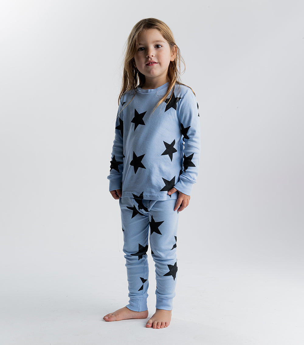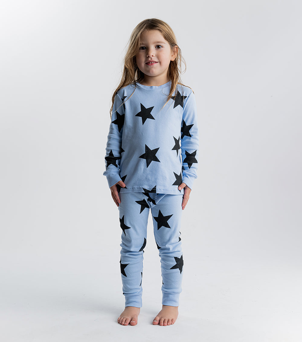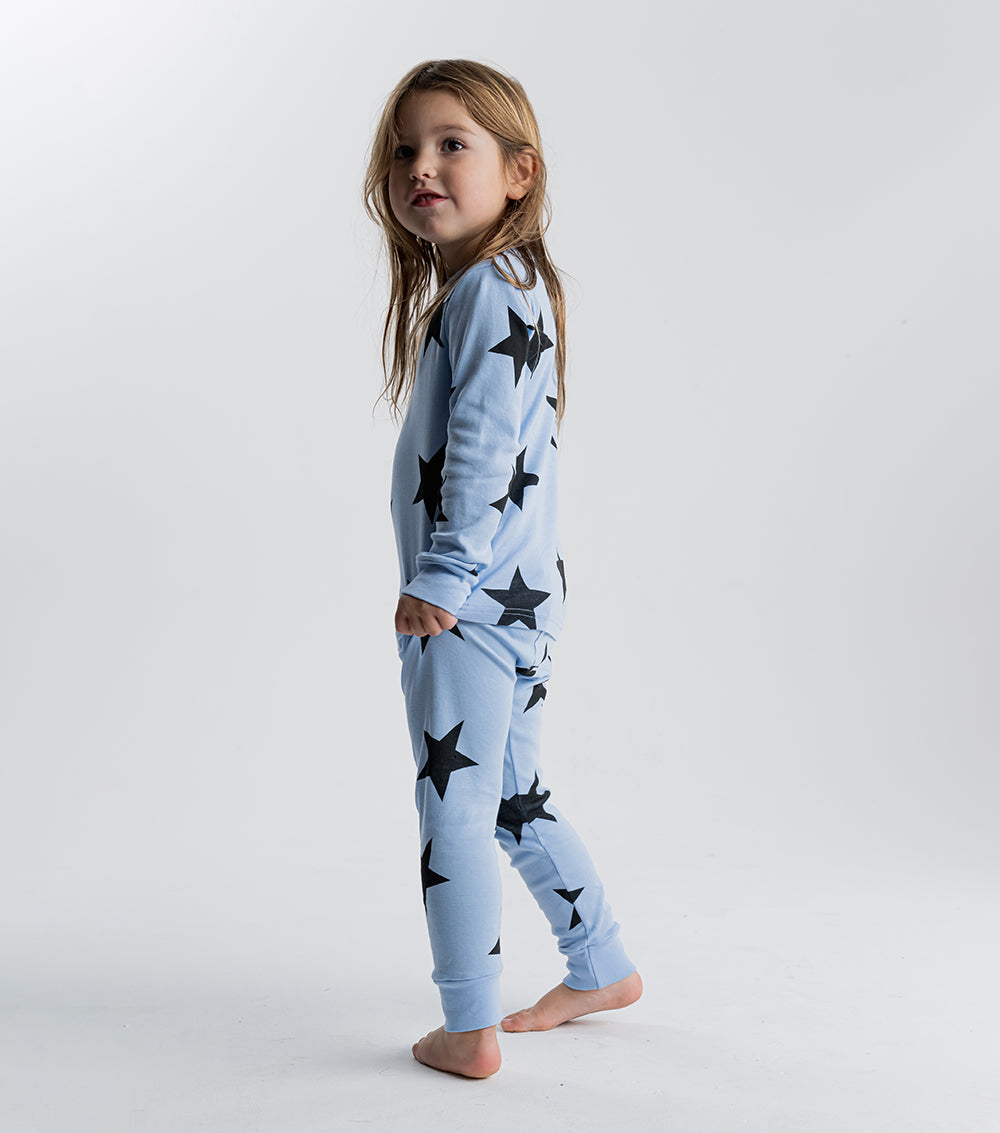 every kid is a rock star in our star print leggings. the latest update on this classic style is the logo waistband & care tag at the cuff. whether they’re worn for school or play, add a bit of cosmic cool to the look in these foggy blue leggings that give kids the freedom they need to dance, play & eventually rule the world. layer them under a dress or pair them up with our t-shirts & sweatshirts.