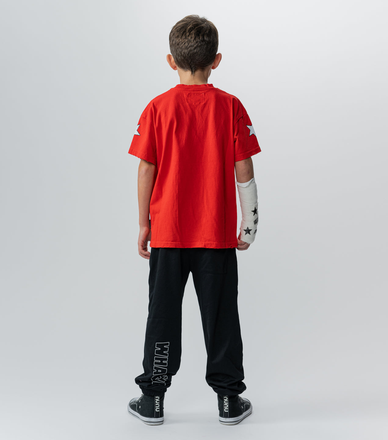 it’s time for team nununu tryouts and of course your kid has already made the cut. so they’re definitely going to want to start showing off that their number 49 with this totally swaggy gender neutral red t made of heavy single cotton. it’s got deconstruction that’s as badass as they are plus it says whatever in block outlined letters because your kid already knows they’re going to win or learn from every game. our logo is below the number & stars are printed on the side of the sleeves because this crew is as out of this world as it gets. welcome to team nununu.