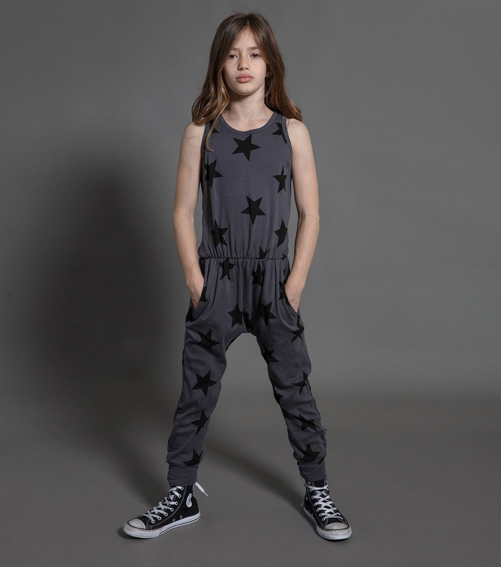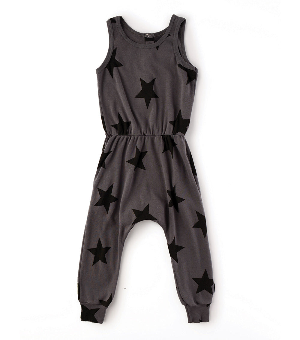 you know we love to splash our beloved start print everywhere, but it really shines on this summer-fun iron one-piece sleeveless romper for girls. the top has a clean, high tank neck & the bottoms are nice & relaxed for freedom of movement. elastic waist cuffed ankles keep it neat. throw it on & go about your summer adventures. the only decision is: sneakers or flip-flops?