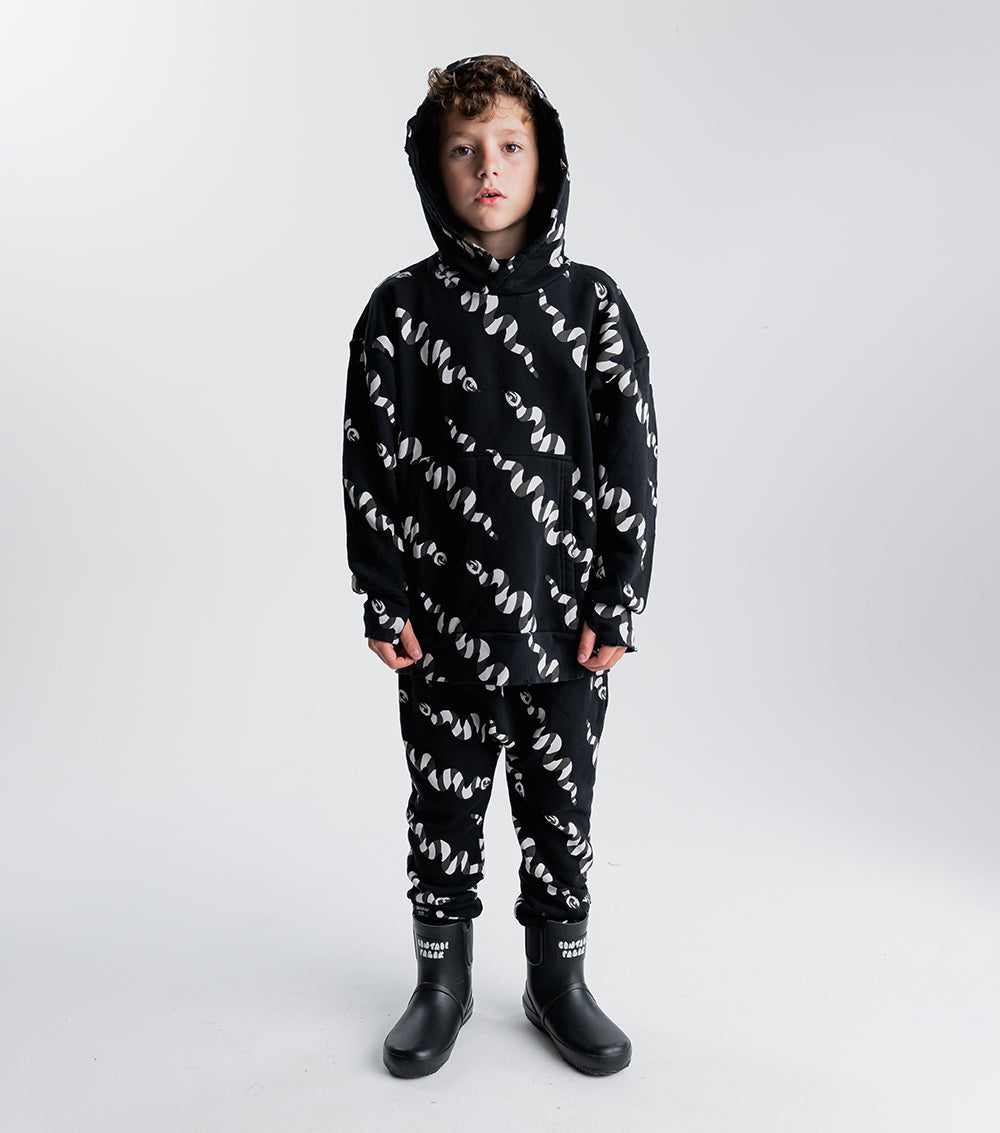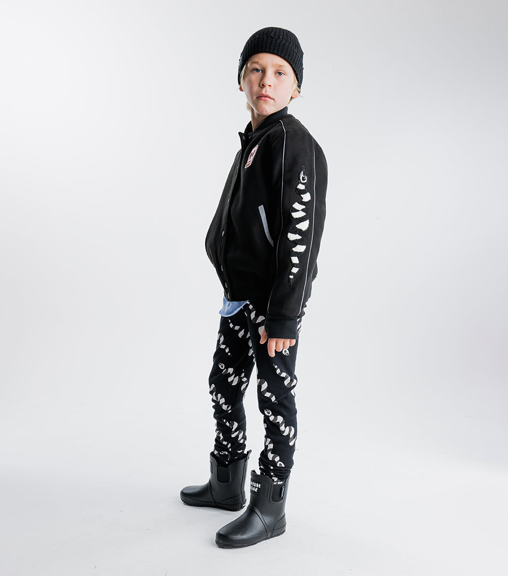 sometimes not looking fierce at all times comes back to bite you. with these totally vicious baggy pants for boys & girls, that's not going to be a problem. to keep them in full cozy mode, they’re made of super soft french terry, feature a cinched drawstring waistband, and jogger-style ankle cuffs. oh yeah, and they’ve got snakes slithering all over. perfect to please your little snake charmer.