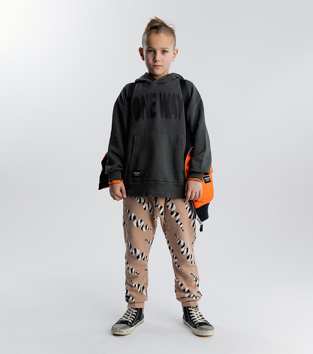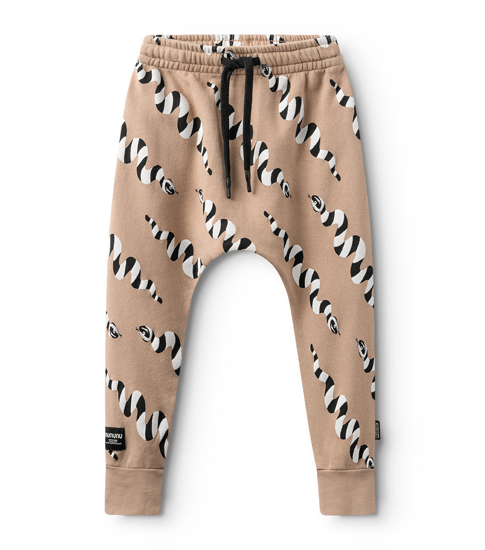 sometimes not looking fierce at all times comes back to bite you. with these totally vicious baggy pants for boys & girls, that's not going to be a problem. to keep them in full cozy mode, they’re made of super soft french terry, feature a cinched drawstring waistband, and jogger-style ankle cuffs. oh yeah, and they’ve got snakes slithering all over. perfect to please your little snake charmer.